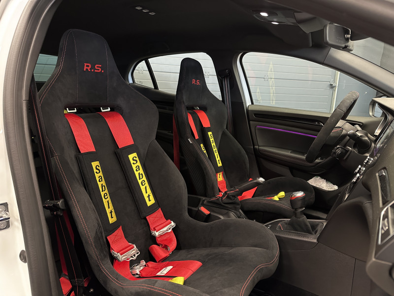 Agent Renault vend une Trophy R Pack Record 1.8L 300CV N°009/500 Française dont seulement 30 sur les 500 en pack record, véhicule en exposition dans notre showroom qui fait parti de notre collection personnel depuis 3 ans et qui n'a jamais roulé sur circuit elle est dans un état absolument neuf, véhicule qui dispose des freins céramique, jantes carbone neuve encore avec les étiquettes que nous avons monté pour mettre la voiture en exposition dans le showroom (les jantes d'origine sont dans les housses de protection ce sont les Fujilight Rouge), amortisseurs Ohlins, barre anti rapprochement, caméra de recul, capot en carbone, diffuseur en carbone, échappement Akrapovic, RS Monitor, sièges Sabelt en alcantara avec les harnais, covering carbone sur les coques de sièges, volant alcantara, carte mains libre, régulateur/limiteur de vitesse, Apple CarPlay & Android Auto, GPS, radio, bluetooth, climatisation automatique