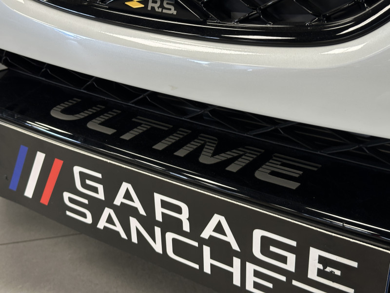 Agent Renault vend une Megane RS ULTIME dans une configuration Blanc Nacré qui dispose du châssis CUP, rein bi-matière, black pack d'origine incluant la lame avant noire avec le sticker ULTIME, diffuseur arrière noir, déchromage, kit déco ULTIME, caméra de recul, radars 360°, jantes 19 Fujilght Full Black, étriers de frein rouge, antenne requin, sellerie alcantara avec les sièges Récaro, volant cuir/alcantara, carte mains libre, alerte de franchissement de ligne, régulateur de vitesse adaptatif, Apple CarPlay & Android Auto, radio, bluetooth, climatisation automatique