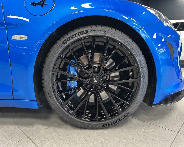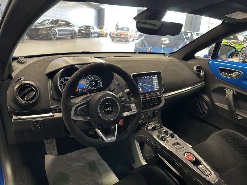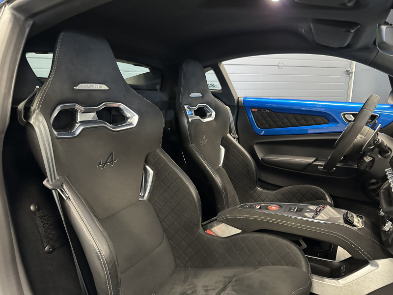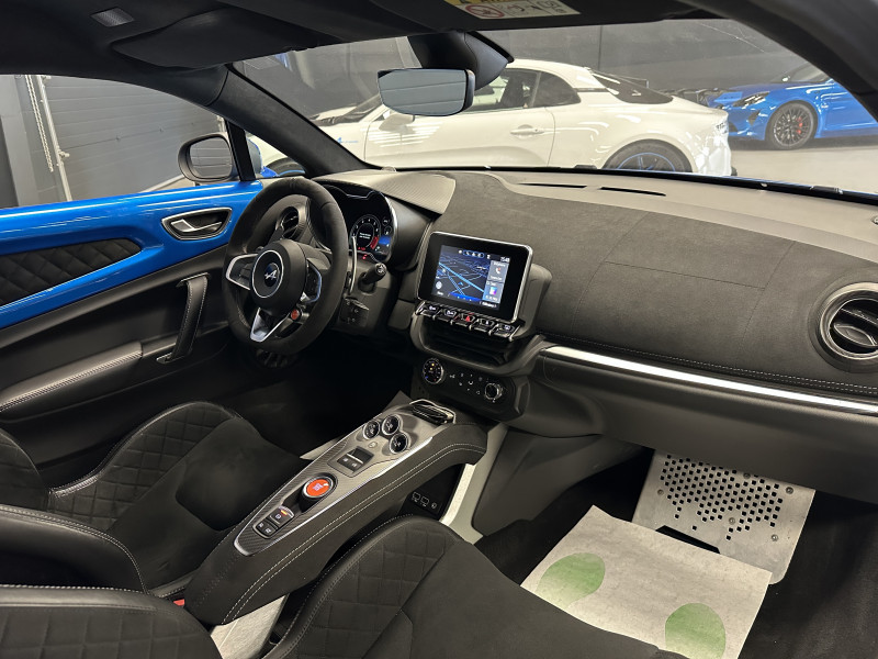 Agent Renault vend une A110 S dans une configuration Bleu Alpine qui dispose du pack aéro incluant la lame et l'aileron en carbone, échappement sport, kit gros freins avec les étriers bleu, black badge complet, jantes 18'' GT Race Noir Brillantes, caméra de recul avec aide aux stationnement avant et arrières, pack microfibre, sièges Racing Microfibre, pack carbone intérieur, intérieur avec les surpiqures grise, sièges Sabelt en alcantara, volant alcantara, ciel de toit dinamica, logo A au centre du volant en noir, Alpine Télémétrics, Pack Focal, pédalier aluminium, repose pied passager aluminium, seuil de porte Alpine, tapis de sol Alpine, rétroviseurs rabattables électriquement, rétroviseur intérieur éléctrochrome, carte mains libre, régulateur/limiteur de vitesse, Apple CarPlay & Android Auto, GPS, radio, bluetooth, climatisation automatique