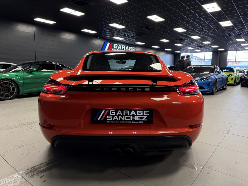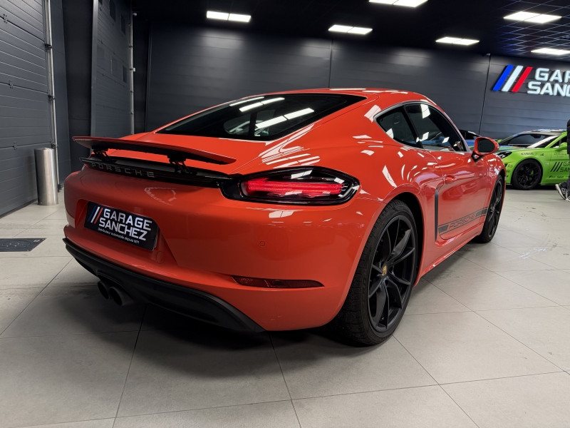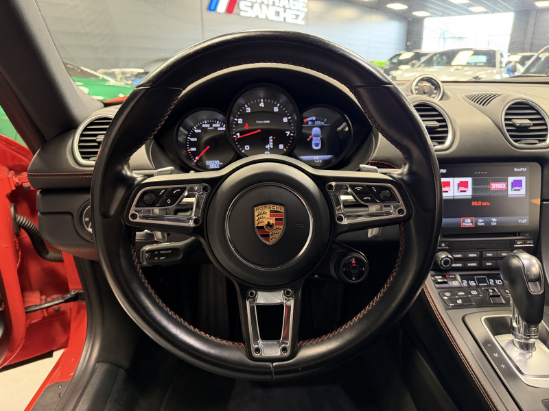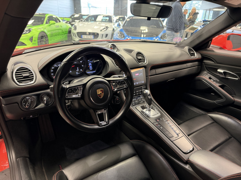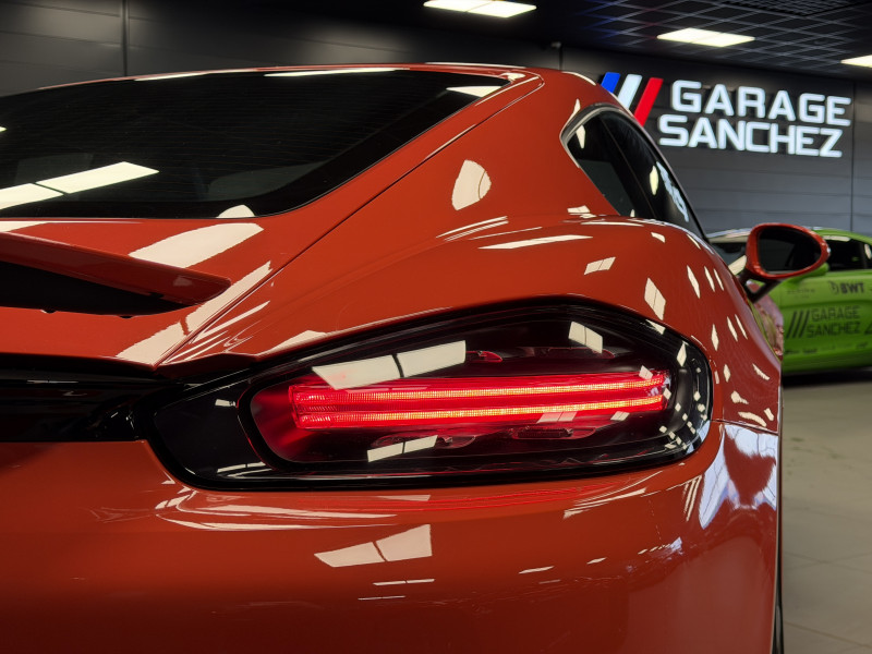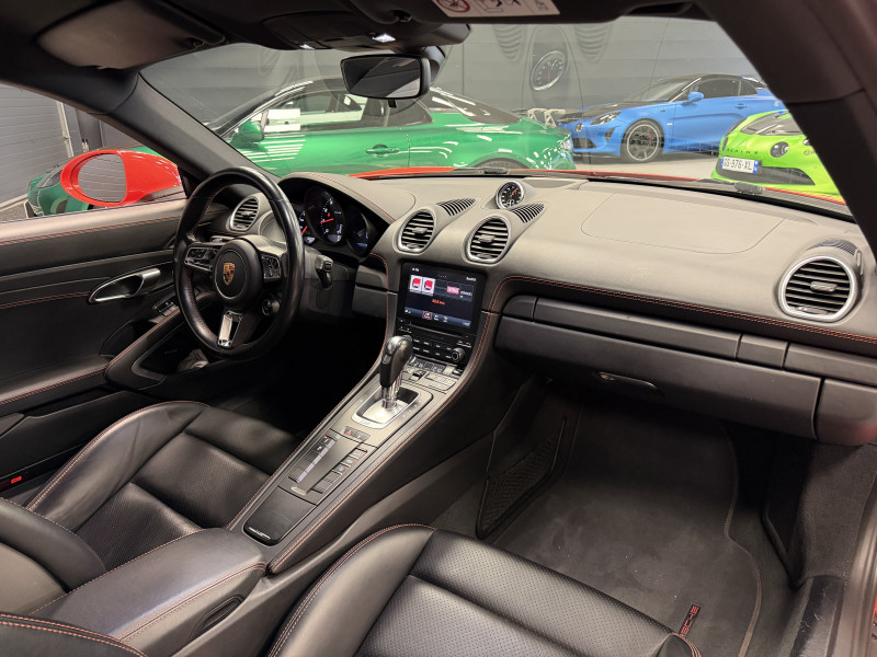 Agent Renault vend un 718 Cayman dans une configuration Orange Fusion qui dispose du pack sport chrono, PSE (système d'échappement sport), PASM (suspensions adaptatives), PDLS+ (Porsche Dynamic Light System Plus), PADM (système de support moteur dynamiques), PCM (Porsche Communication Management), radars avant/arrières, jantes 20 Carrera S, pack cuir étendu, console centrale en cuir, surpiqures intérieur orange, sellerie cuir, sièges sport plus avec écusson Porsche sur les appuie-têtes, sièges avant chauffants, volant sport gt, volant chauffant, filet de rangement, régulateur de vitesse, Apple CarPlay, GPS, radio, bluetooth, climatisation automatique