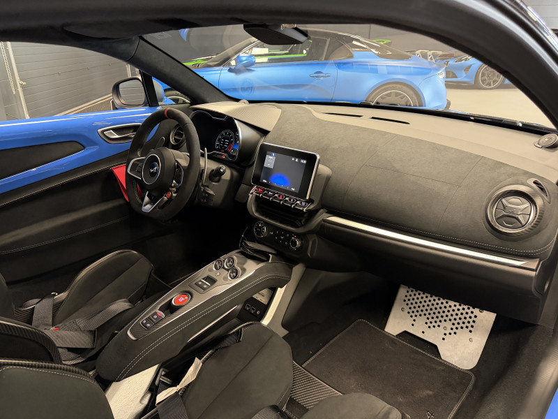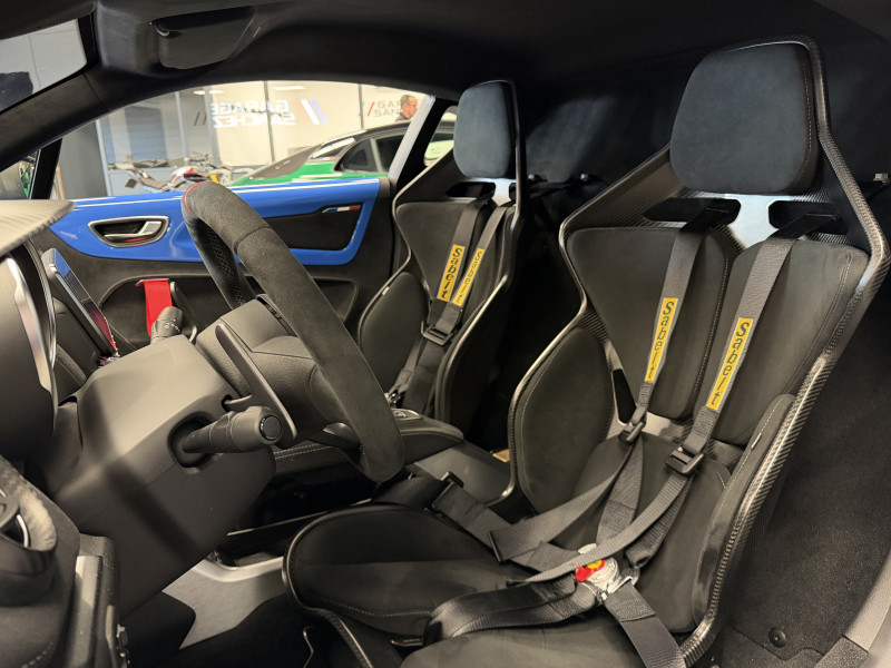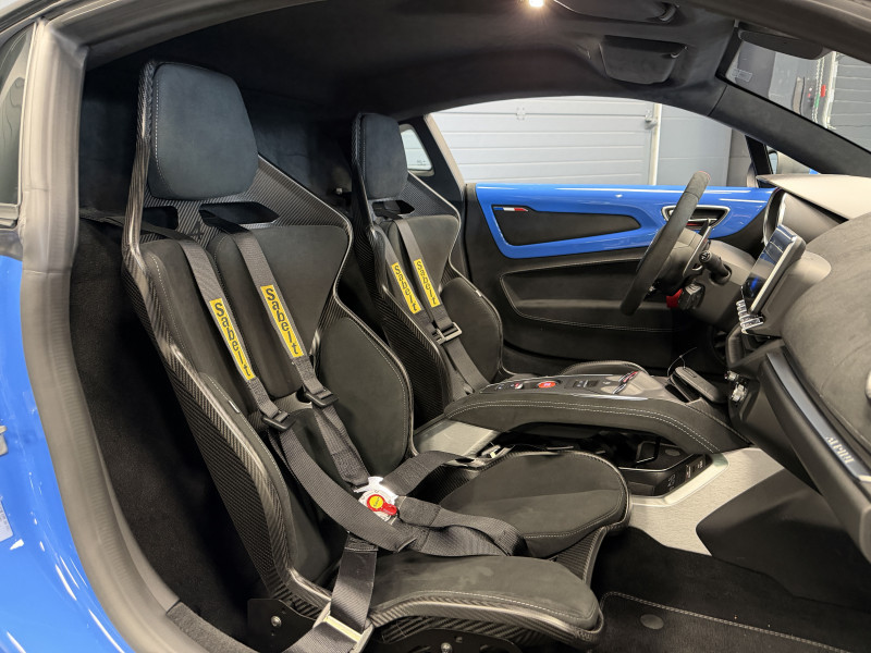 Agent Renault vend une Alpine A110 R dans une configuration Bleu de France recouverte en totalité par un film PPF qui dispose des jantes carbone qui ne sont plus disponibles donc très rare, étriers de frein jaune, caméra de recul, feux translucides, pack microfibre, sièges Sabelt full carbone, harnais Sabelt, volant alcantara, ciel de toit dinamica, sono focal, carte mains libre, rétroviseurs rabattables électriquement, pédalier aluminium, repose pieds passager aluminium, tapis de sol Alpine, régulateur/limiteur de vitesse, Apple CarPlay & Android Auto, GPS, radio, bluetooth, climatisation automatique