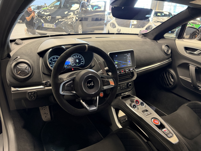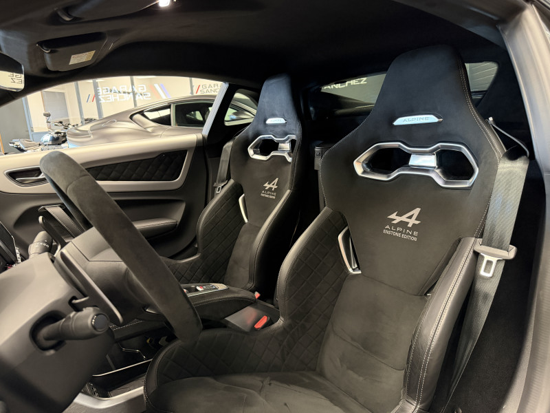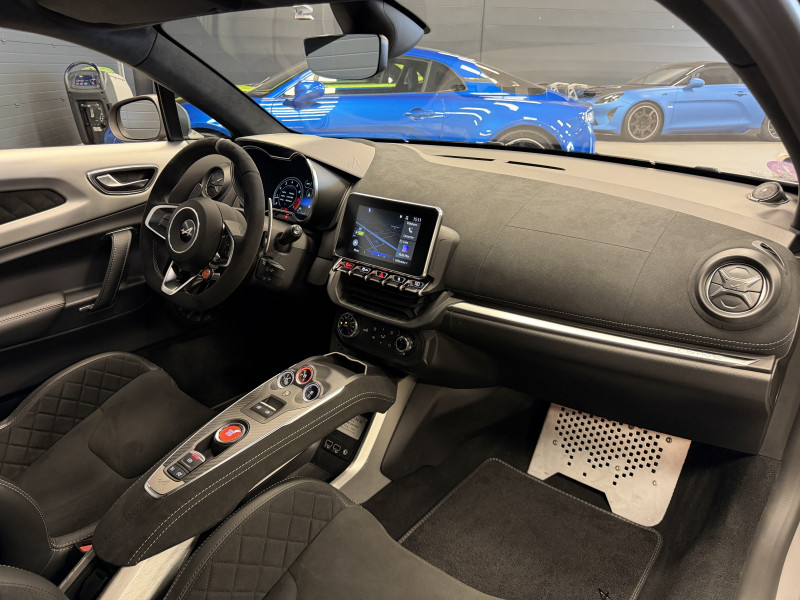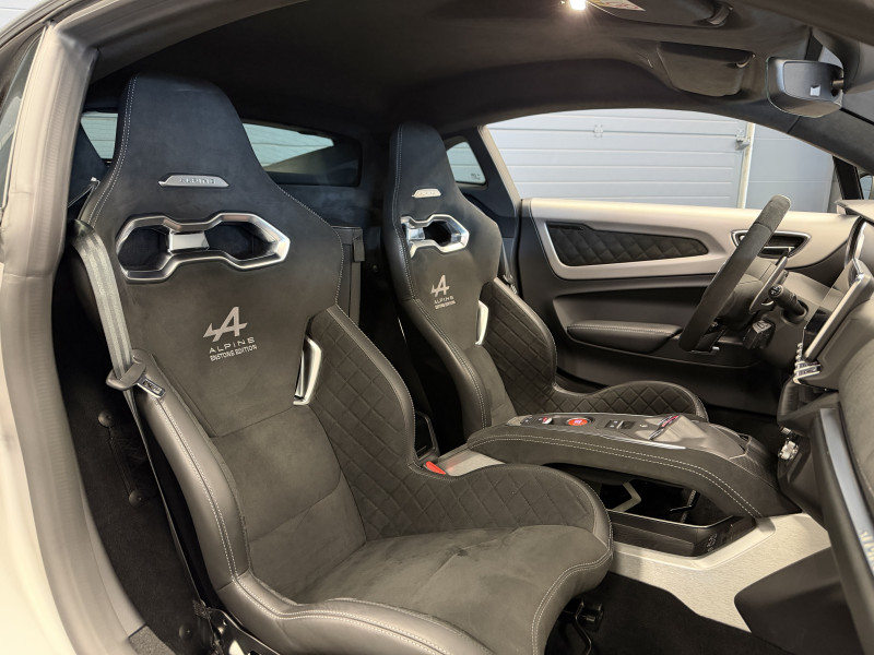 Agent Renault vend une A110 S Enstone Edition dans une configuration Argent Mercure Mat/Toit Noir Mat (recouverte d'un film PPF complet) qui dispose de l'échappement sport, kit gros freins, caméra de recul avec aides aux stationnements avant/arrières, jantes 18 GT Race Noires avec les étriers gris, fond des feux avant noir, logo A sur les ailes qui seront rajoutés pour la vente, black badge complet, pack focal, pack microfibre, pack carbone intérieur, pack rangement, sièges Sabelt en cuir/alcantara, volant alcantara, ciel de toit dinamica, carte mains libre, rétroviseurs rabattables électriquement, rétroviseur intérieur électrochrome, pédalier aluminium, repose pieds passager aluminium, tapis de sol Alpine, régulateur/limiteur de vitesse, Apple CarPlay & Android Auto, GPS, radio, bluetooth, climatisation automatique