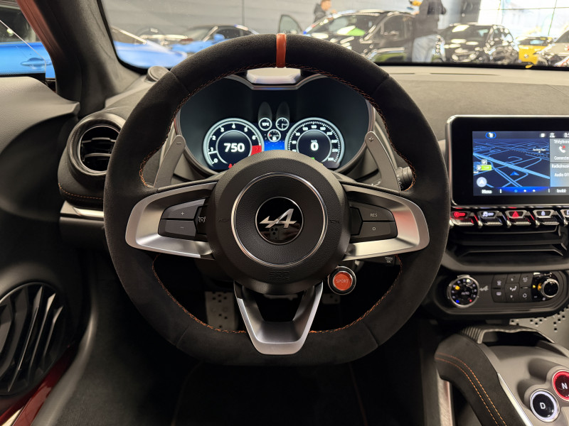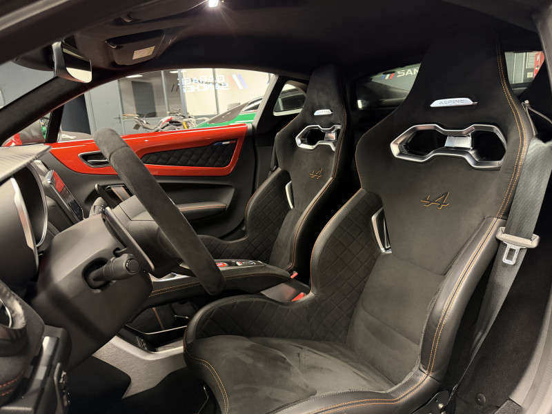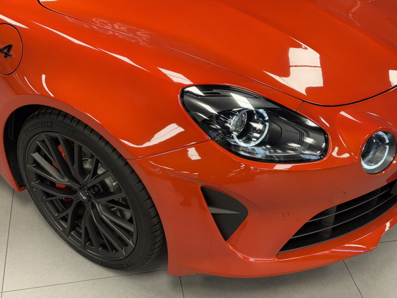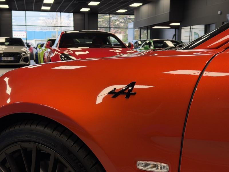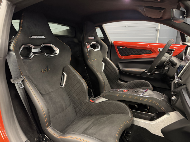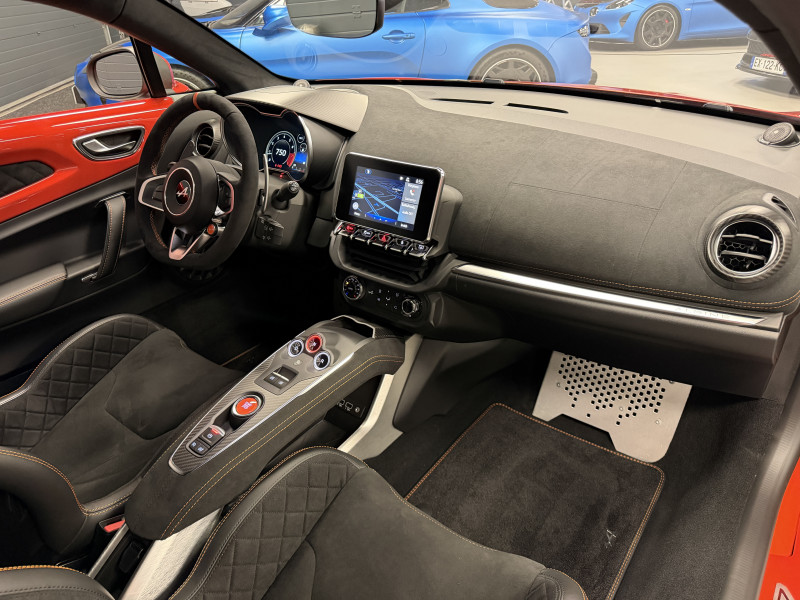 Agent Renault vend une Alpine A110 S II dans une configuration Orange Feu qui dispose de l'échappement sport, kit gros freins avec les étriers orange, black badge complet, fond des feux avant en noir, jantes GT Race 18 Noir Mat, caméra de recul avec aide aux stationnement avant et arrières, pack microfibre, sièges racing microfibre, intérieur avec les surpiqures orange, sièges Sabelt en alcantara, volant alcantara, ciel de toit alcantara, logo A au centre du volant en noir, Alpine Télémétrics, Pack Focal Premium, pédalier aluminium, repose pied passager aluminium, seuil de porte Alpine, tapis de sol Alpine, rétroviseurs rabattables électriquement, rétroviseur intérieur éléctrochrome, carte mains libre, régulateur/limiteur de vitesse, Apple CarPlay & Android Auto, GPS, radio, bluetooth, climatisation automatique
