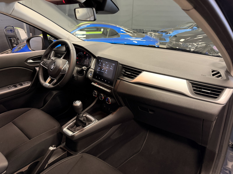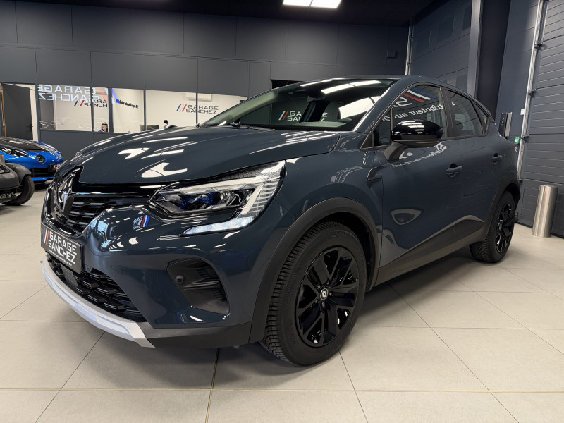 Agent Renault vend un Captur 2 dans une configuration Bleu Marine Fumé qui dispose de la caméra de recul, radars de recul avant/arrières, black pack incluant les enjoliveurs noir ainsi que les coques de rétroviseurs noires, jantes 17 , sellerie tissu bi-ton, carte mains libre, alerte de franchissement de ligne, maintien de voie, régulateur/limiteur de vitesse, Apple CarPlay & Android Auto, GPS, radio, bluetooth, climatisation manuelle, roue de secours