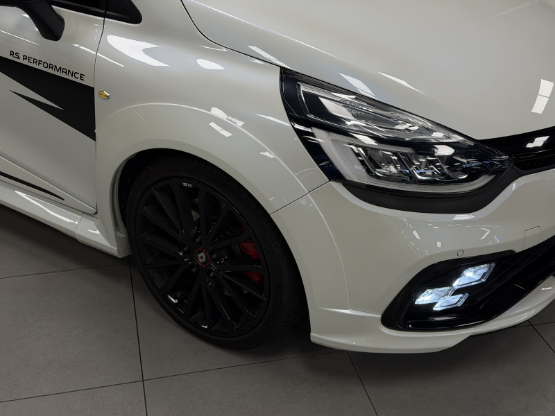 Agent Renault vend une Clio 4 RS Trophy full options dans une configuration Blanc Nacré avec une préparation complète réalisée dans nos ateliers, véhicule qui dispose du Bodykit RS Performance, aileron CUP RS Performance, peinture du toit en noir étoilé, black pack/black badge incluant la lame avant noire, les baguettes latérales en noir, le diffuseur noir ainsi que tous les logos noir, silencieux tube GT Performance, kit déco RS Performance, pack city plus incluant la caméra de recul ainsi que les radars avant/arrières, jantes 18 Full Black avec les étriers rouge, antenne requin, RS Monitor, sellerie cuir, sièges avant chauffants, carte mains libre, régulateur/limiteur de vitesse, Android Auto, GPS, radio, bluetooth, BOSE, climatisation automatique