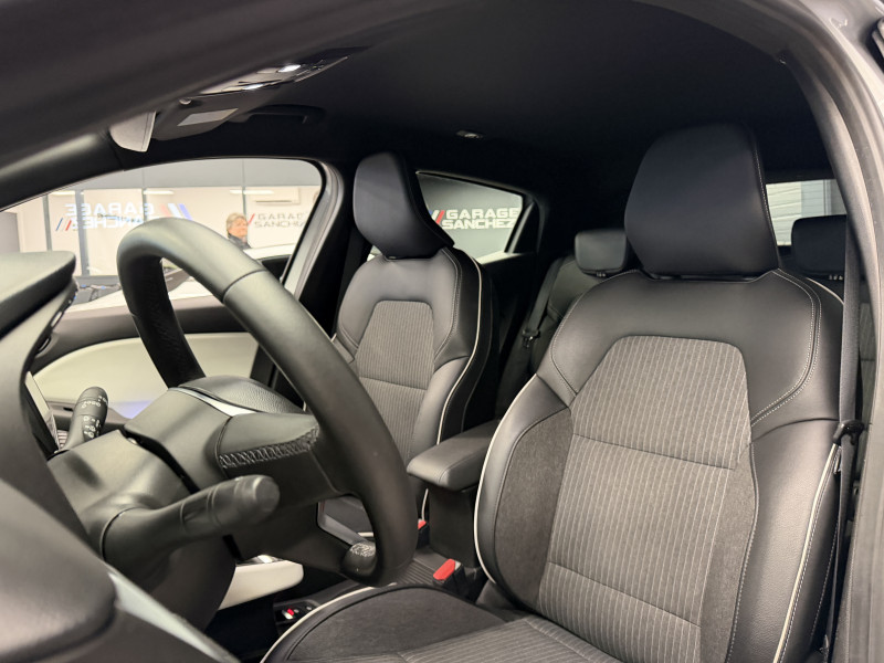 Agent Renaut vend une Clio 5 dans une configuration Gris Platine qui dispose de la caméra de recul, radars de recul avant/arrières, jantes 16 Diamantées Noires, sellerie cuir/tissu bi-ton gris et noir, intérieur noir, ciel de toit noir, pack ambiance lumineuse, décors intérieur blanc, carte mains libre, alerte de franchissement de ligne, maintien de voie, régulateur/limiteur de vitesse, Apple CarPlay & Android Auto, GPS, radio, bluetooth, climatisation automatique, roue de secours