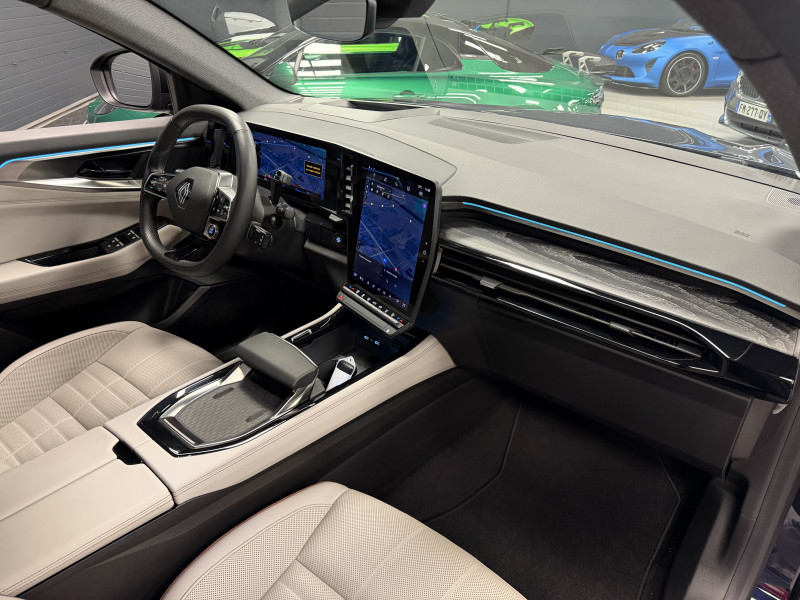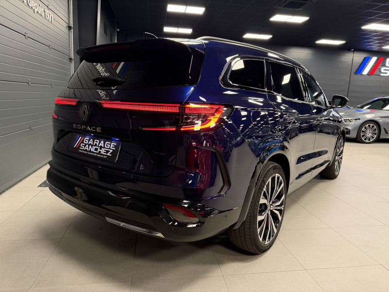 Agent Renault vend un Espace 7 Places dans une configuration Bleu Nocturne qui dispose du 4 control advanced, affichage tête haute, caméra 360°, radars 360°, jantes 20 Iconic Diamantées Noires, hayon motorisé, écran 12.3 , virtual cockpit, sellerie cuir, sièges électriques à mémoire et chauffants, volant chauffant, pare brise chauffant, chargeur induction, pack ambiance lumineuse, alerte de franchissement de ligne, avertisseur d'angles morts, régulateur de vitesse adaptatif avec assistance de conduite, carte mains libre, Apple CarPlay & Android Auto, GPS, radio, bluetooth, climatisation automatique