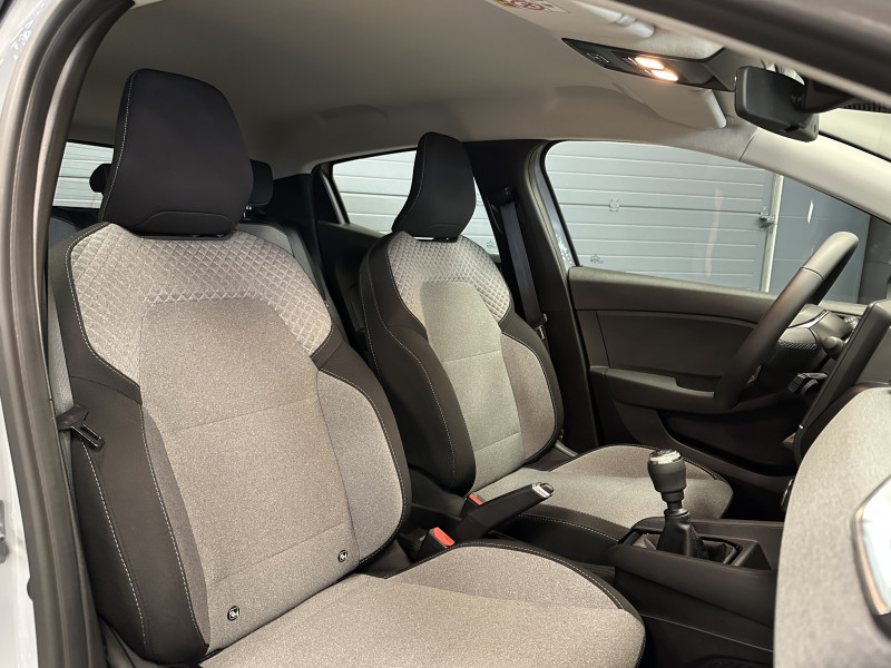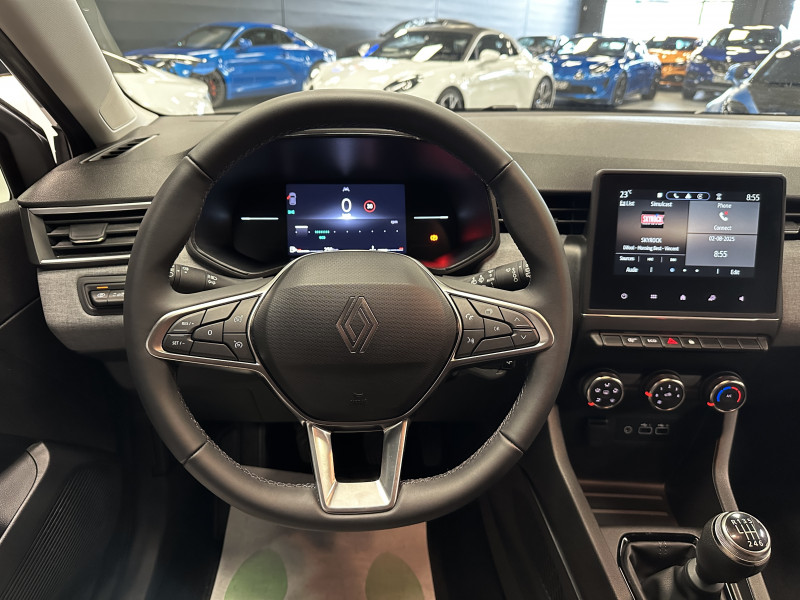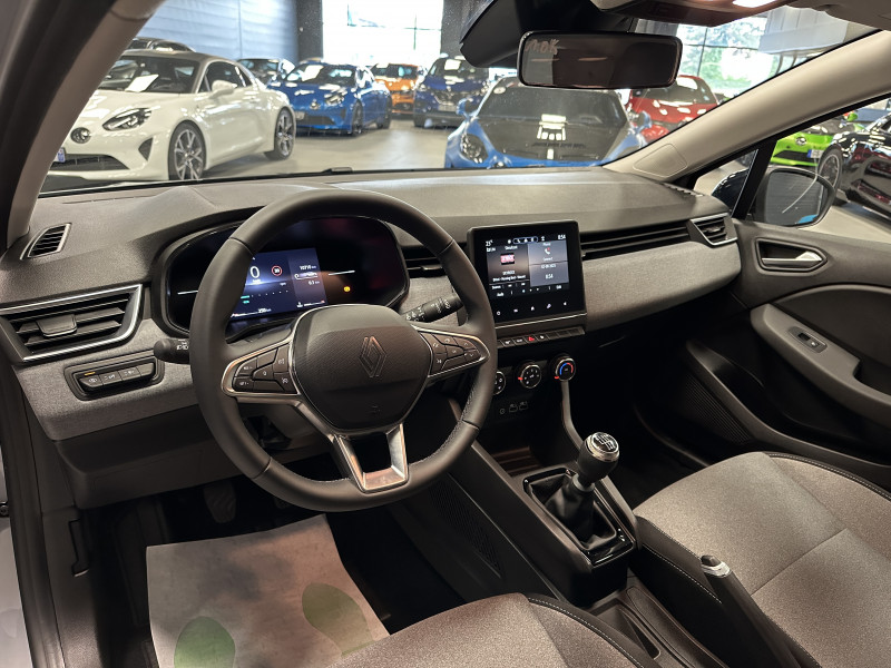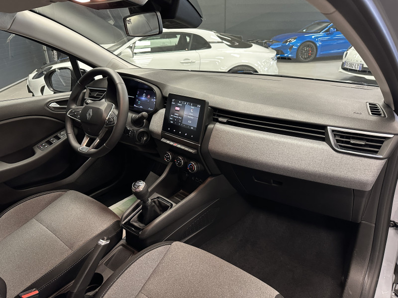 Agent Renaut vend une Clio 5 dans une configuration Gris Rafale qui dispose d'un black pack incluant les 4 enjoliveurs noir, radars de recul arrières, jantes 16 , sellerie tissu bi-ton gris et noir, intérieur noir, alerte de franchissement de ligne, maintien de voie, régulateur/limiteur de vitesse, Apple CarPlay & Android Auto sans fil, GPS, radio, bluetooth, climatisation manuelle