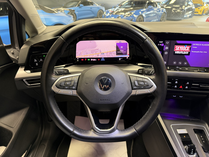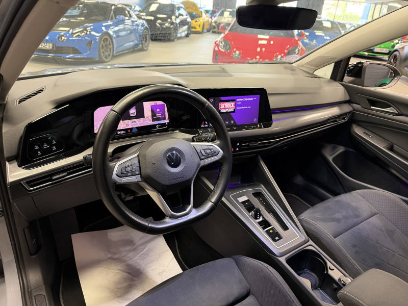 Agent Renault vend une Golf 8 dans une configuration Gris Nardo qui dispose d'un black pack incluant les 4 jantes noires, radars avant/arrières, vitres teintées, clignotants dynamiques, antenne requin, jantes 18 full black, démarrage sans clé, virtual cockpit, sellerie tissu/alcantara, sièges avant chauffant, volant chauffant, pack ambiance lumineuse, ACC (régulateur de vitesse adaptatif), lane assist, front assist, avertisseur de sortie de stationnement, Apple CarPlay & Android Auto, GPS, radio, bluetooth, climatisation automatique