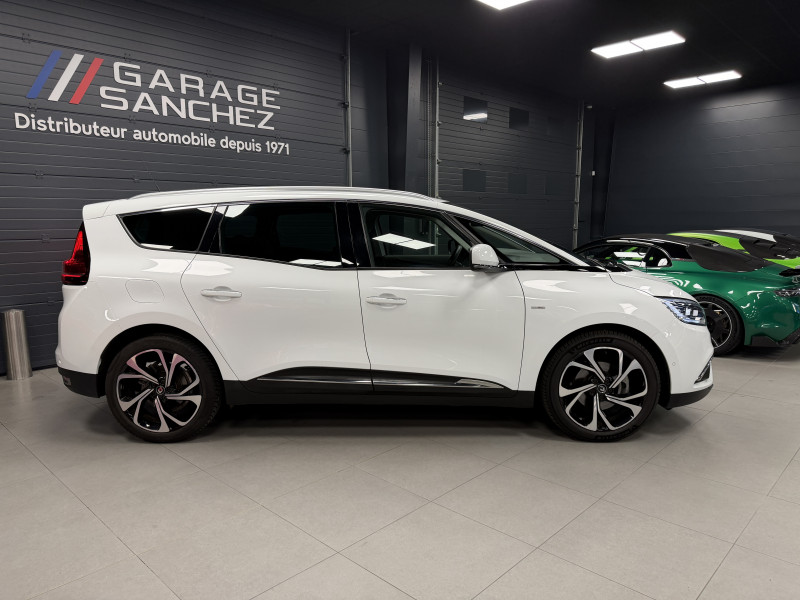 Agent Renault vend un Grand Scenic 4, 7 Places dans une configuration Blanc Glacier qui dispose de l'easy park assist incluant la caméra de recul ainsi que les radars 360°, jantes 20 Diamantées Noires, Sono BOSE, sellerie cuir/tissu, carte mains libre, alerte de franchissement de ligne, avertisseur d'angles morts, détecteur de fatigue, régulateur/limiteur de vitesse, Apple CarPlay & Android Auto, GPS, radio, bluetooth, climatisation automatique