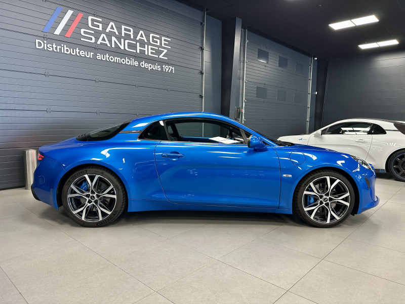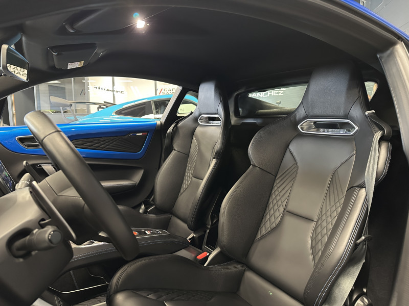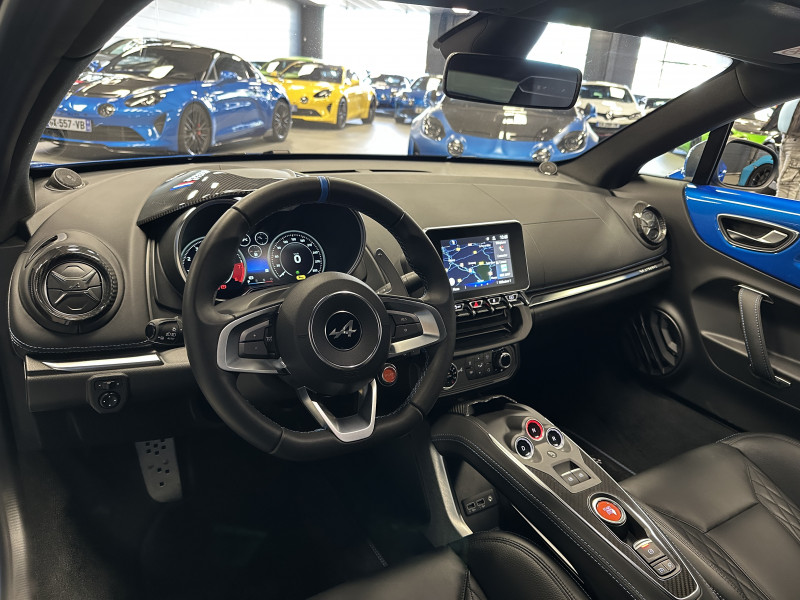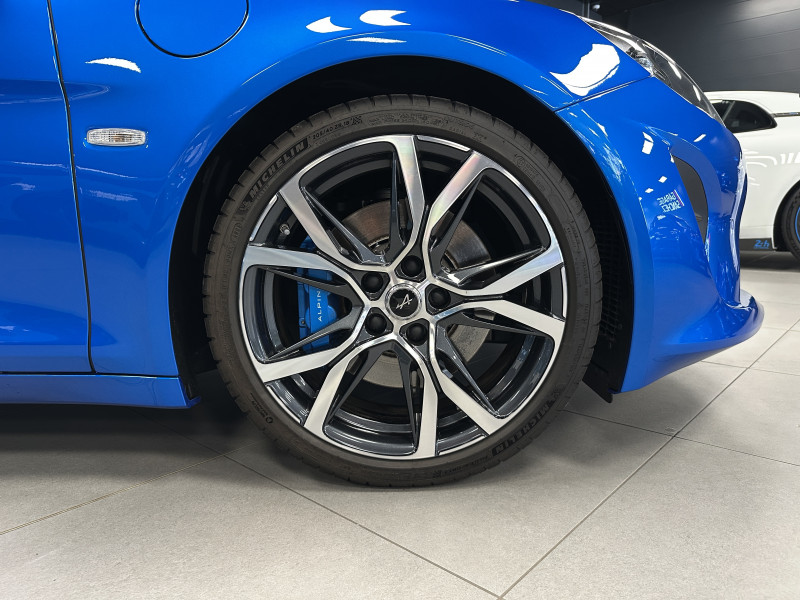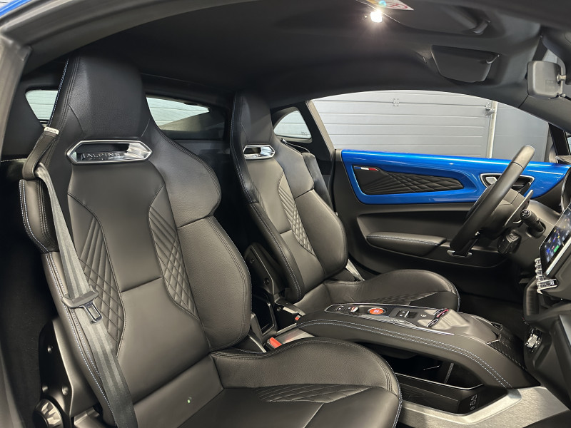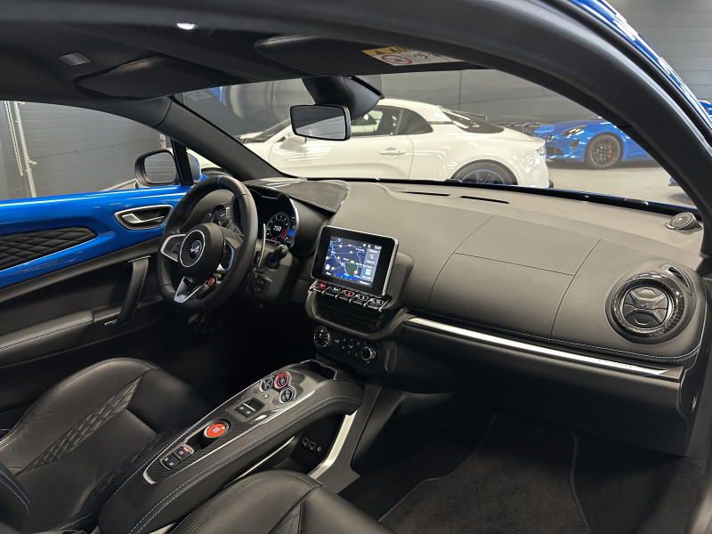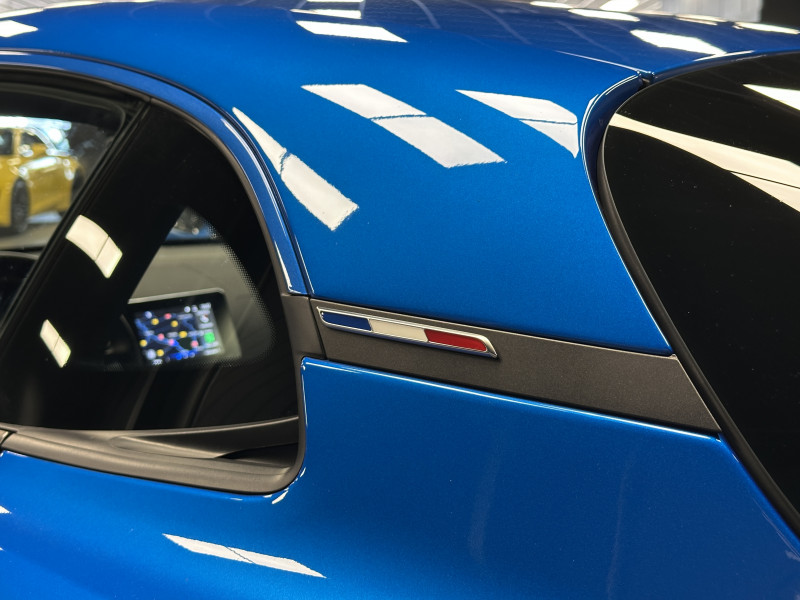 Agent Renault vend une Alpine A110 (version avec les sièges réglables sans passer par la boulonnerie comme les modèles S et Pure) dans une configuration Bleu Alpine qui dispose de l'échappement sport, kit gros freins, caméra de recul, radars avant/arrières, jantes 18 Sérac Diamantées, étriers de frein bleu, logo A sur les ailes avant qui seront rajoutés pour la vente, centres de roues noires, drapeau Français sur les montant et à l'intérieur des portes, pack carbone intérieur, pack Focal Premium, intérieur noir, sièges confort, ciel de toit noir, pédalier aluminium, tapis de sol Alpine, carte mains libre, régulateur/limiteur de vitesse, Apple CarPlay & Android Auto, GPS, radio, Bluetooth, climatisation automatique