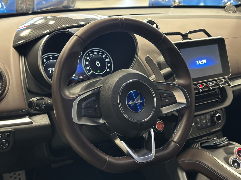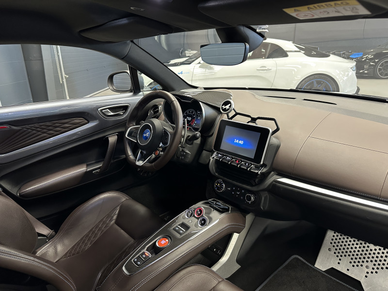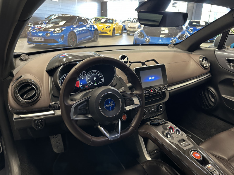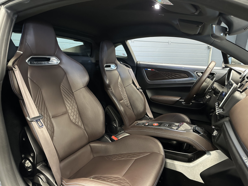 Agent Renault vend une Alpine A110 (version avec les sièges réglables sans passer par la boulonnerie comme les modèles S et Pure) dans une configuration Gris Tonnerre qui dispose d'un black pack incluant les 4 jantes noires, échappement sport actif, kit gros frein, caméra de recul, radars avant/arrières, jantes 18 Fuchs Forgées Full Black, étriers de frein rouge, logo A sur les ailes avant, centres de roues noires, drapeau Français sur les montant et à l'intérieur des portes, pack carbone intérieur, pack Focal Premium, intérieur brun, sièges confort en cuir brun avec les sièges avant chauffants, ciel de toit noir, logo bleu, au centre du volant, pédalier aluminium, tapis de sol Alpine, rétroviseurs rabattables électriquement, rétroviseur électrochrome, carte mains libre, régulateur/limiteur de vitesse, GPS, radio, Bluetooth, climatisation automatique