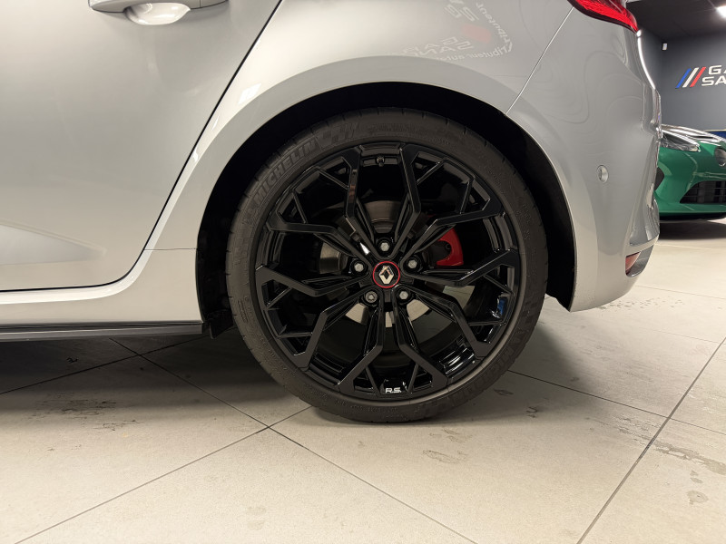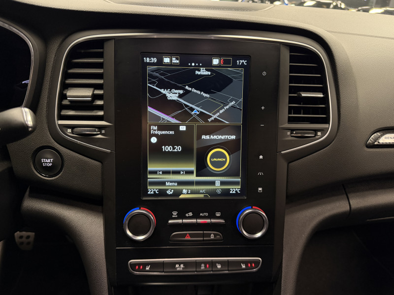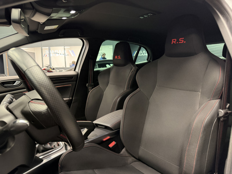 Agent Renault vend un véhicule dans une configuration Gris Platine boite manuelle qui dispose du châssis CUP, frein bi-matière avec les étriers rouge, demi ligne full tube, affichage tête haute, easy park assist incluant la caméra de recul ainsi que les radars 360°, jantes Interlagos Full Black 19 , antenne requin, RS Monitor, sellerie tissu, sièges avant chauffants, volant cuir, carte mains libre, alerte de franchissement de ligne, régulateur de vitesse, Apple CarPlay & Android Auto, GPS, radio, bluetooth, climatisation automatique