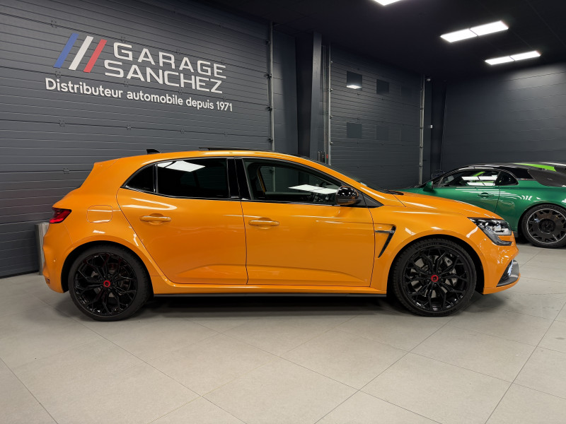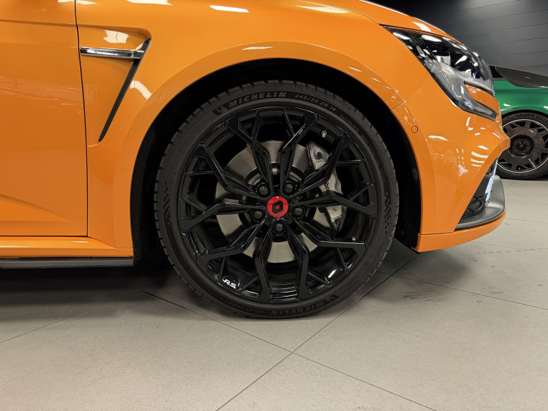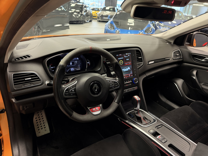 Agent Renault vend une Megane 4 RS dans une configuration Orange Tonic qui dispose du toit ouvrant panoramique, easy park assist incluant la caméra de recul ainsi que les radars 360°, jantes Interlagos Full Black 19 , antenne requin, déchromage des contours de vitres noir brillant, black badge, RS Monitor, sellerie alcantara, sièges avant chauffants, volant cuir/alcantara, carte mains libre, alerte de franchissement de ligne, régulateur de vitesse, Apple CarPlay & Android Auto, GPS, radio, bluetooth, BOSE, climatisation automatique