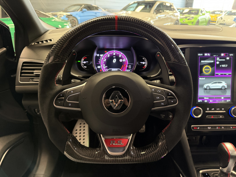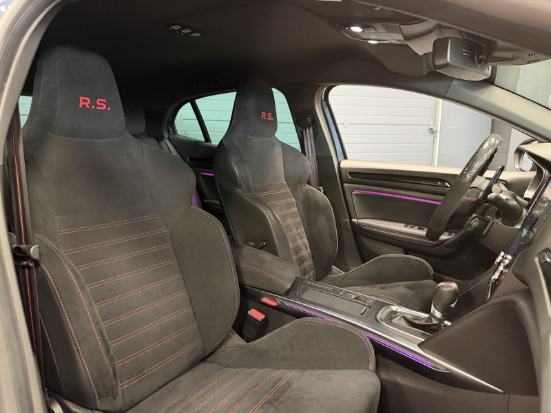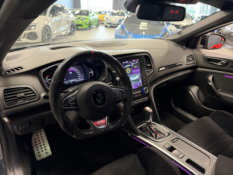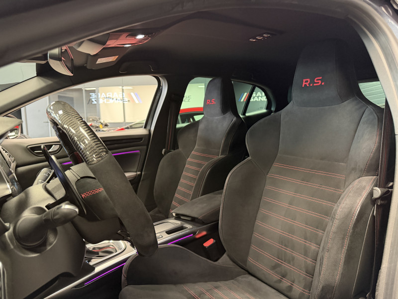 Agent Renault vend une Megane 4 RS dans une configuration Gris Titanium qui dispose d'un intermédiaire tube, volant carbone, bandeau de pare soleil RS Performance, affichage tête haute, easy park assist incluant la caméra de recul ainsi que les radars 360°, jantes Interlagos Diamantées 19 , RS Monitor, sellerie alcantara, sièges avant chauffants, ciel de toit noir, carte mains libre, alerte de franchissement de ligne, régulateur de vitesse, Apple CarPlay & Android Auto, GPS, radio, bluetooth, climatisation automatique