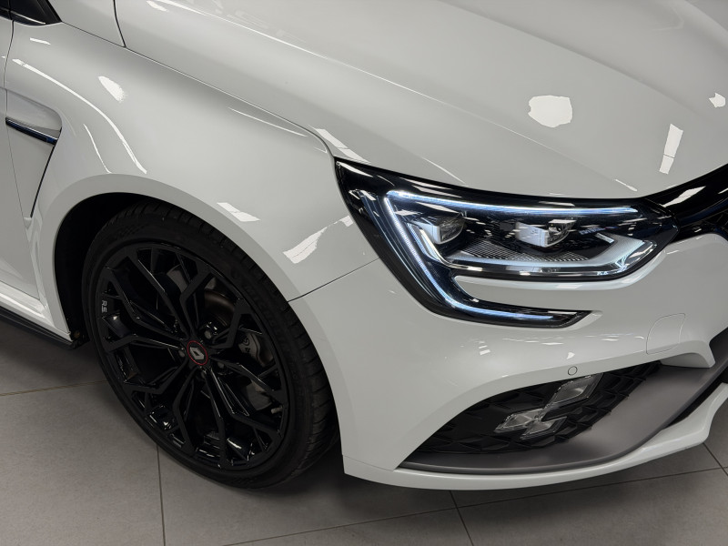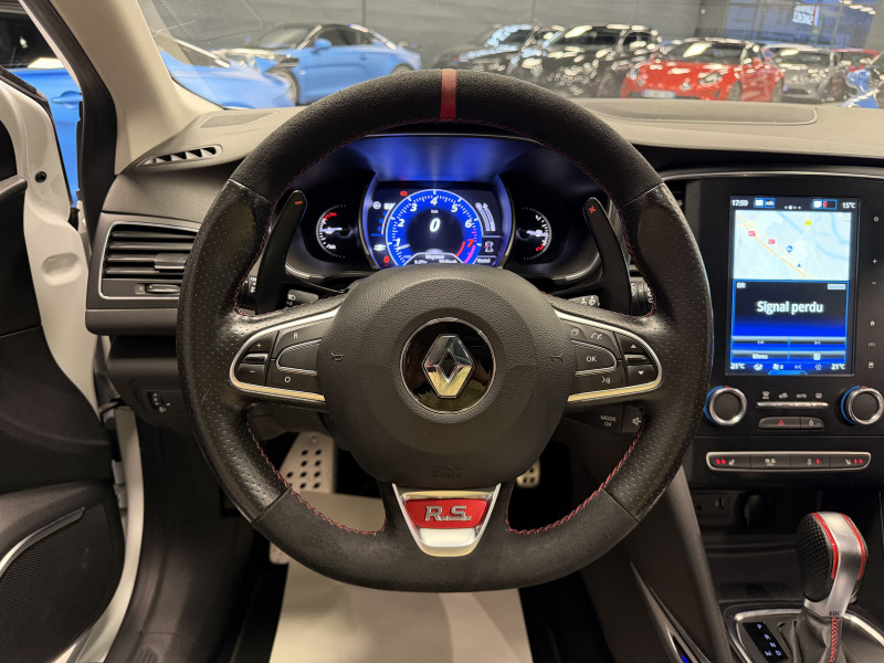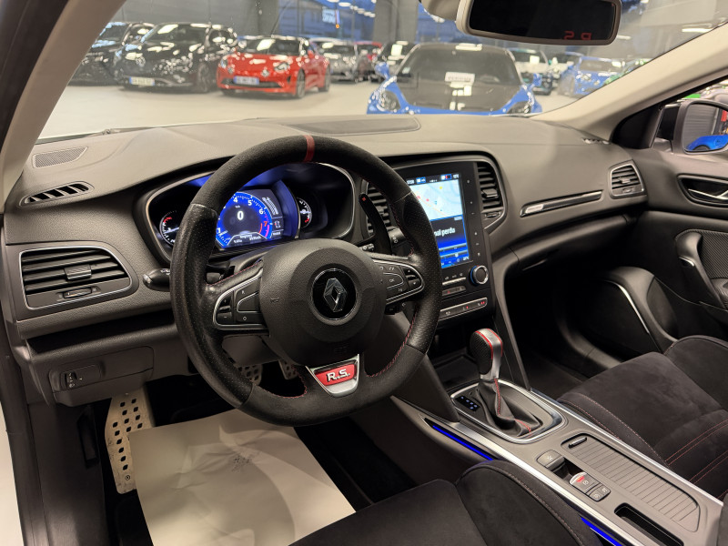 Agent Renault vend une Megane 4 RS dans une configuration Blanc Nacré qui dispose du toit ouvrant panoramique, caméra de recul, radars avant/arrières, jantes Interlagos Full Black 19 , sellerie alcantara, sièges avant chauffants, volant cuir/alcantara, carte mains libre, alerte de franchissement de ligne, régulateur de vitesse, Apple CarPlay & Android Auto, GPS, radio, bluetooth, climatisation automatique