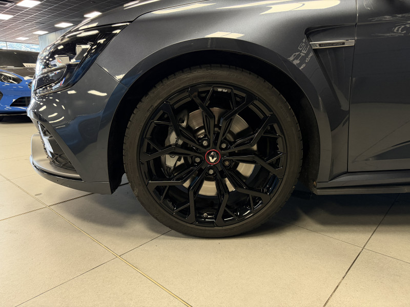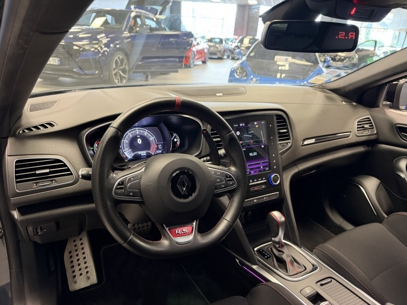 Agent Renault vend une Megane 4 RS dans une configuration Gris Titanium qui dispose de la caméra de recul, radars de recul avant/arrières, jantes 19 Interlagos Full Black, sellerie tissu, volant cuir, ciel de toit noir, carte mains libre, alerte de franchissement de ligne, régulateur de vitesse, Apple CarPlay & Android Auto, radio, bluetooth, BOSE, climatisation automatique