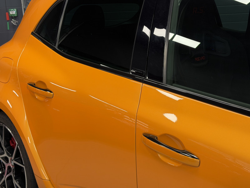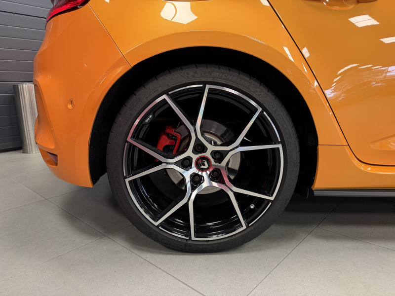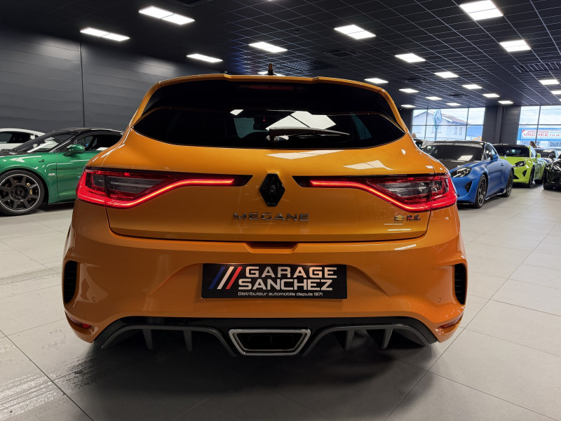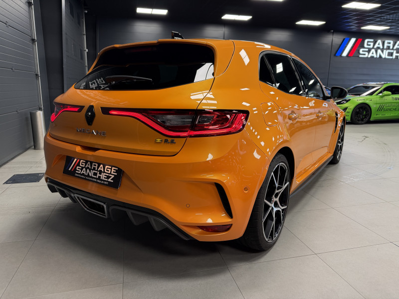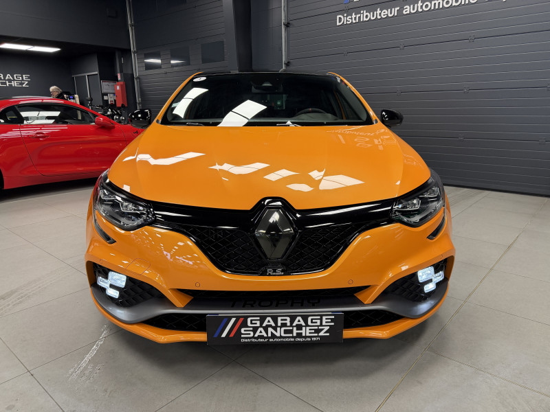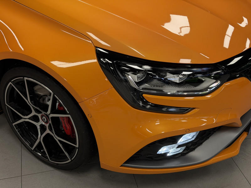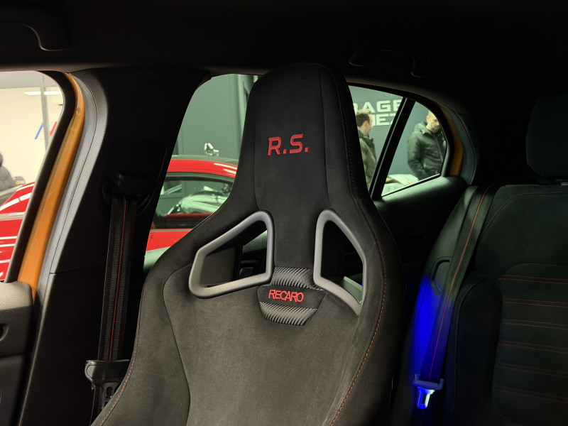 Agent Renault vend une Megane 4 RS dans une configuration Orange Tonic qui dispose du châssis CUP, frein bi-matière, covering du toit en noir, déchromage complet des contours de vitres et des poignées de portes, easy park assist incluant la caméra de recul ainsi que les radars 360°, jantes 19 fujilight, étriers de frein rouge, antenne requin, sièges Recaro alcantara, volant cuir/alcantara, ciel de toit noir, carte mains libre, alerte de franchissement de ligne, régulateur de vitesse, Apple CarPlay & Android Auto, radio, bluetooth, BOSE, climatisation automatique