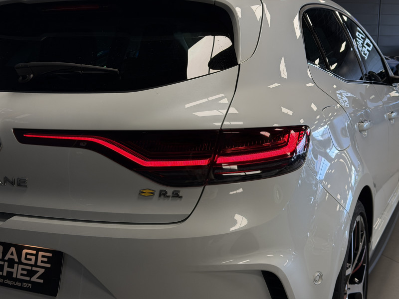 Agent Renault vend une Megane 4 RS dans une configuration Blanc Nacré qui dispose du châssis Cup, frein bi-matière, alarme d'origine Renault, toit ouvrant panoramique, caméra de recul, radars 360°, jantes 19 Jerez, étriers de frein rouge, antenne requin, écran EasyLink 9.3 , tableau de bord 10 avec virtual cockpit, sellerie alcantara, sièges avant chauffants, volant cuir/alcantara, carte mains libre, alerte de franchissement de ligne, régulateur de vitesse adaptatif, Apple CarPlay & Android Auto, GPS, radio, bluetooth, BOSE, climatisation automatique