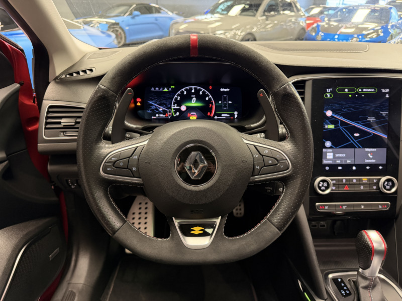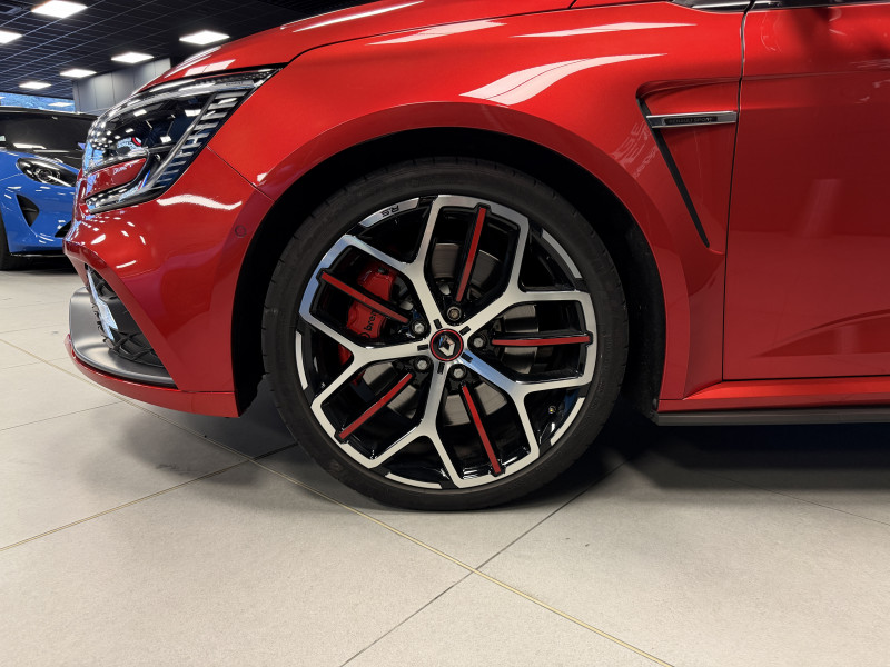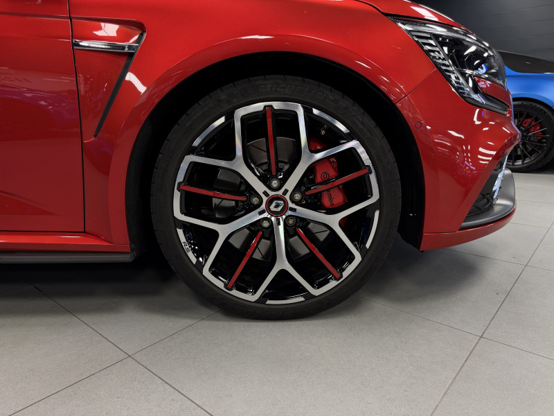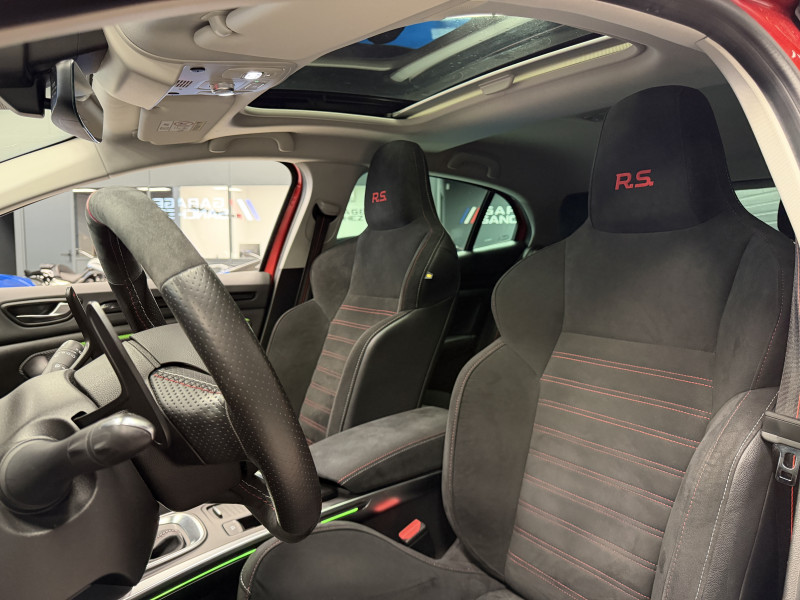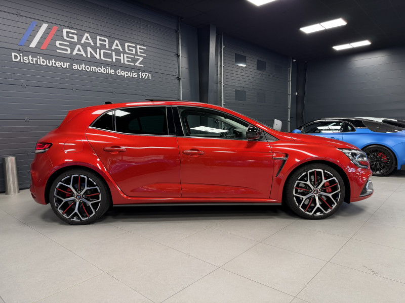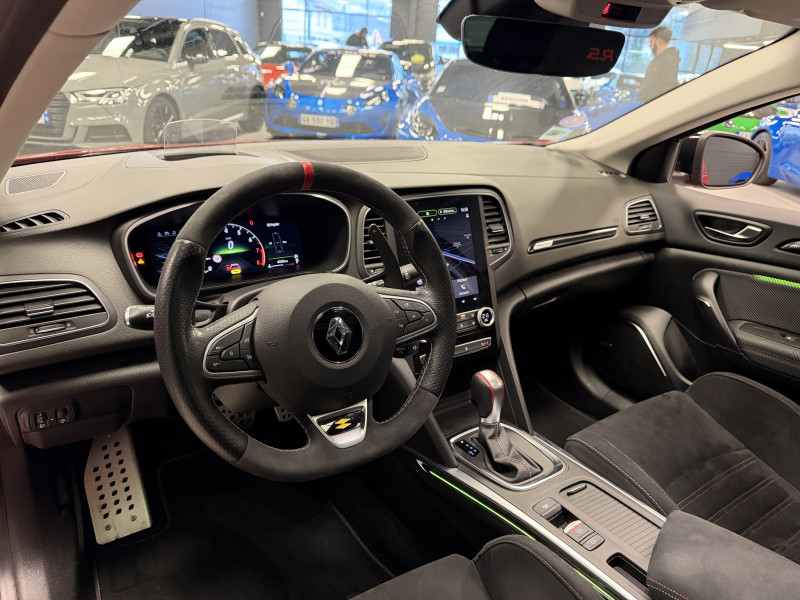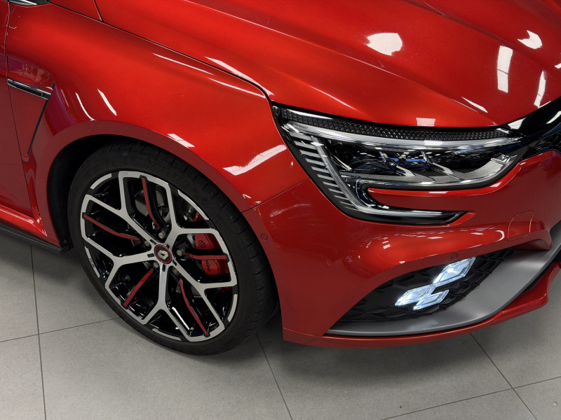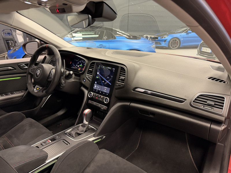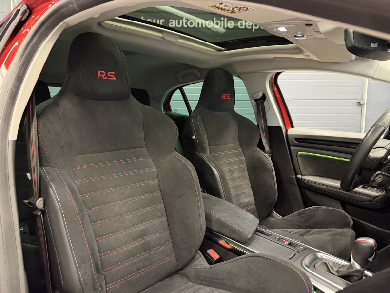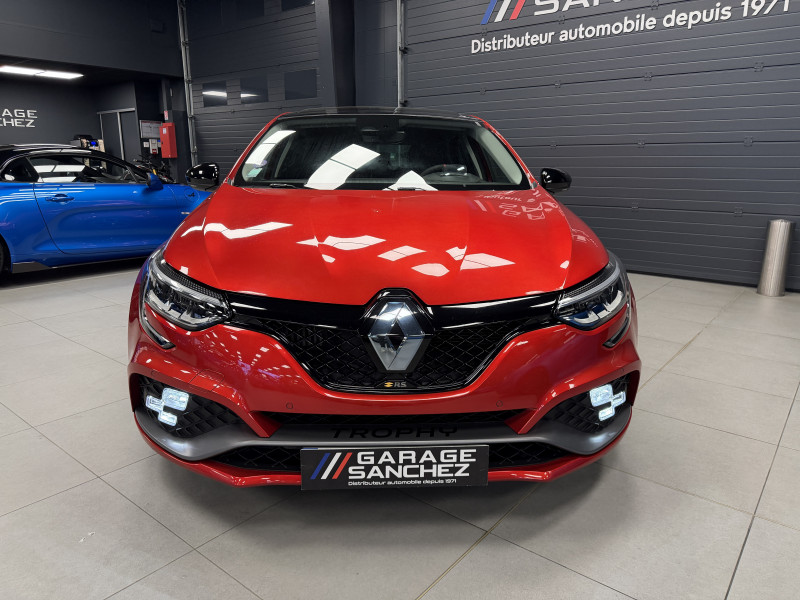 Agent Renault vend une Megane 4 RS Trophy dans une configuration Rouge Flamme qui dispose du châssis CUP, frein bi-matière, toit ouvrant panoramique, affichage tête haute, caméra de recul, radars 360°, jantes 19 Jerez, étriers de frein rouge, antenne requin, RS Monitor, tableau de bord 10 avec virtual cockpit, sellerie alcantara, sièges avant chauffants, volant cuir/alcantara, carte mains libre, alerte de franchissement de ligne, détecteur de fatigue, régulateur/limiteur de vitesse, Apple CarPlay & Android Auto, GPS, radio, bluetooth, BOSE, climatisation automatique