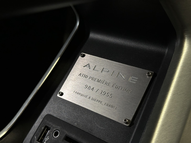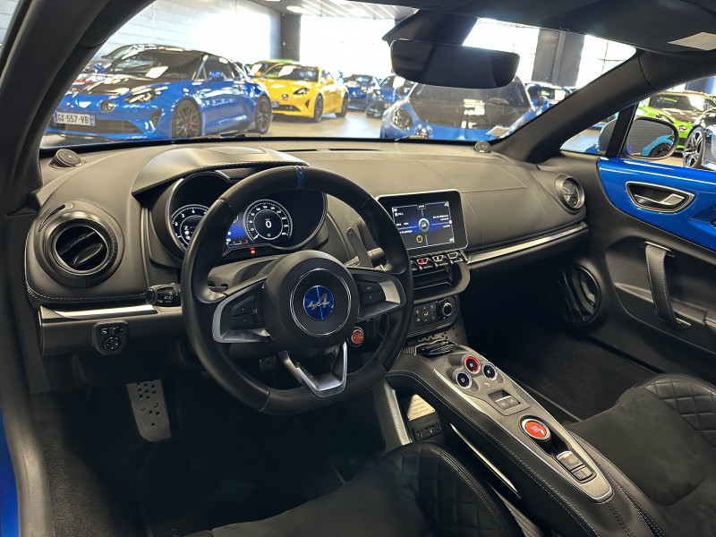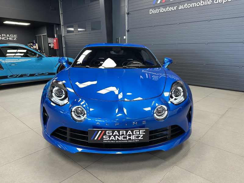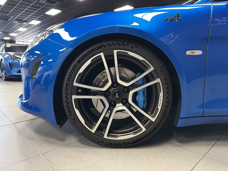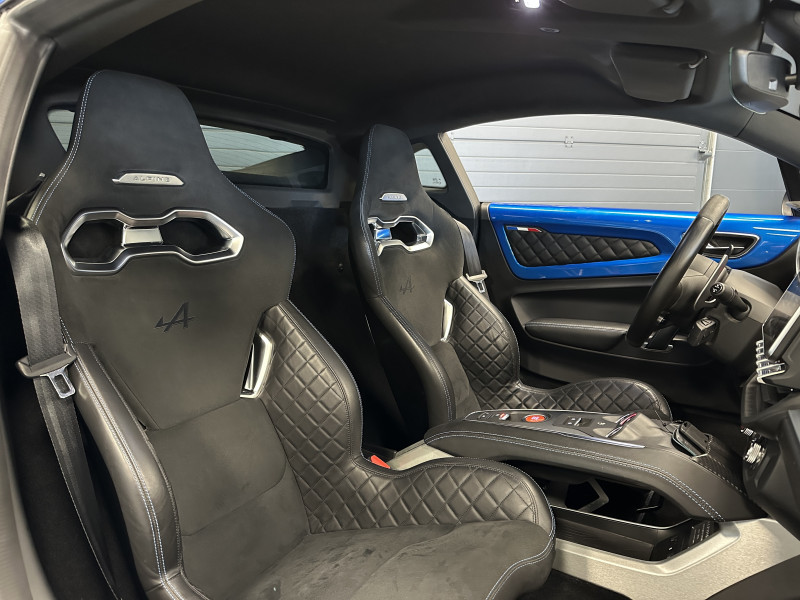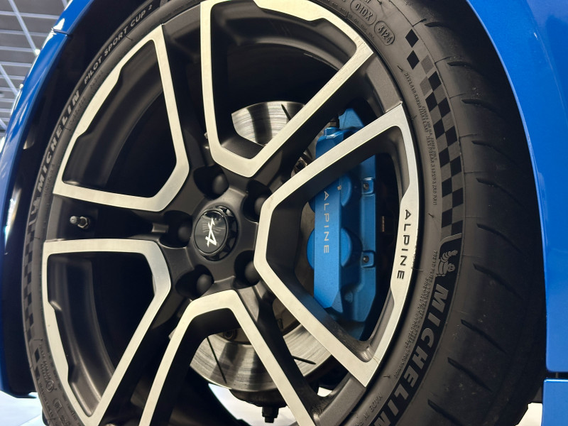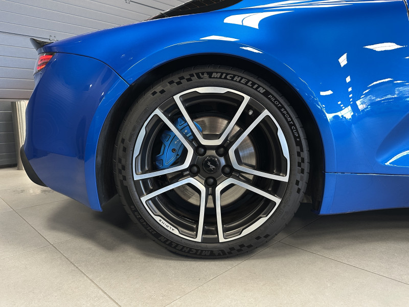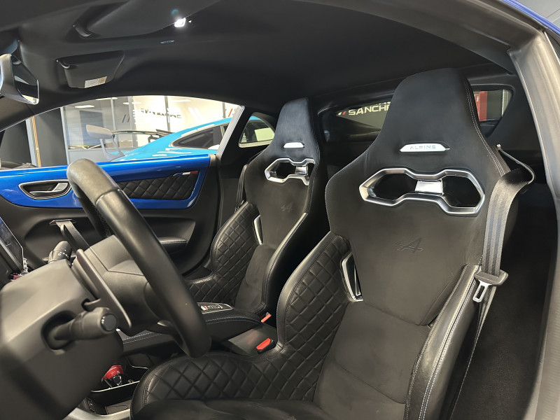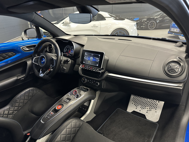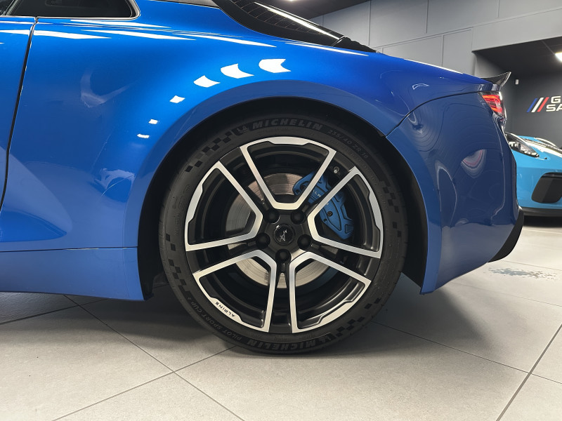 Agent Renault vend une Alpine A110 dans une configuration Bleu Alpine qui dispose de l'échappement sport actif, kit gros freins, amortisseurs Koni (origine fournis), lunette arrière teintée, radars de recul arrières, jantes 18 Fuchs Forgées Diamantées, étriers de frein bleu, centres de roues noires, drapeau Français sur les montant et à l'intérieur des portes, logo A sur les ailes avant, pack carbone intérieur, pack Focal, sièges sabelt en cuir/alcantara, volant cuir/alcantara, ciel de toit noir, logo bleu au centre du volant, pédalier aluminium, tapis de sol Alpine, rétroviseurs rabattables électriquement, rétroviseur électrochrome, carte mains libre, régulateur/limiteur de vitesse, GPS, radio, Bluetooth, climatisation automatique