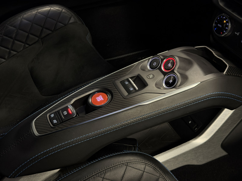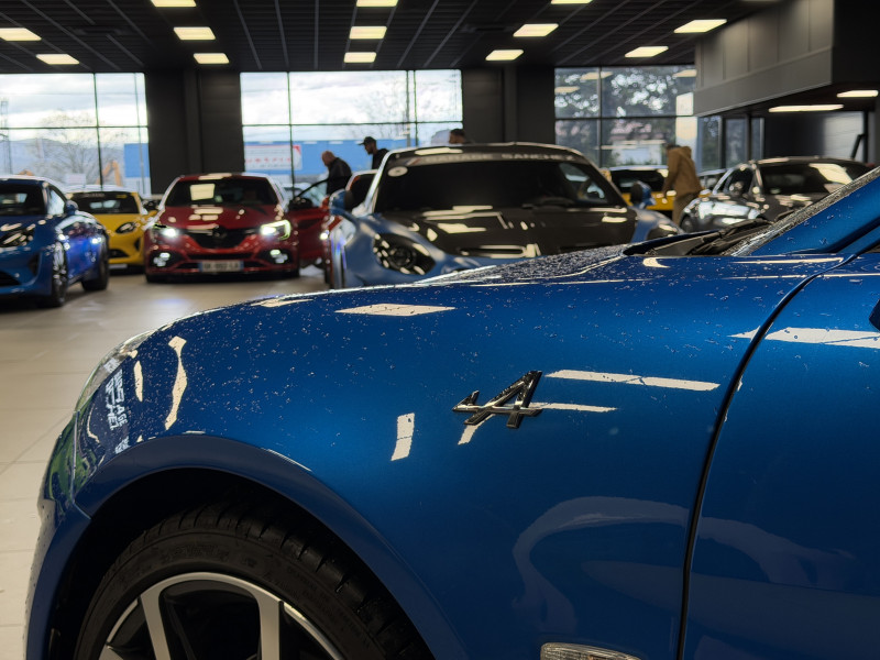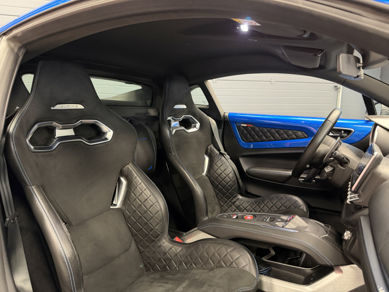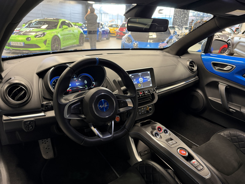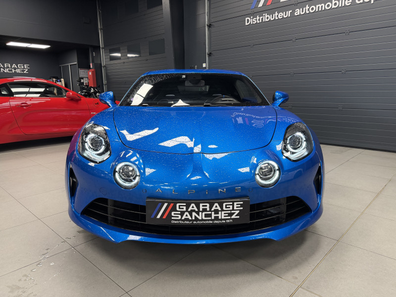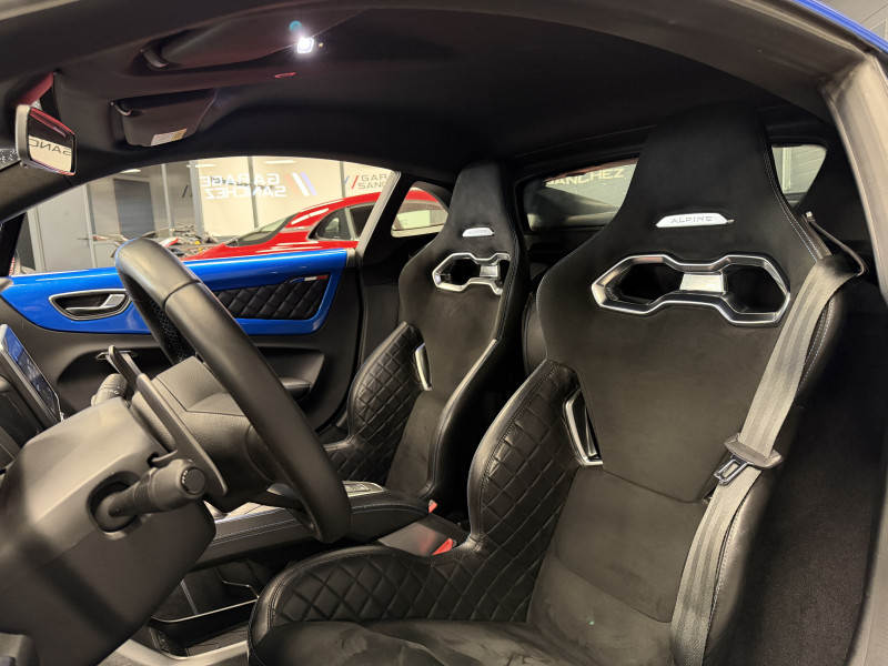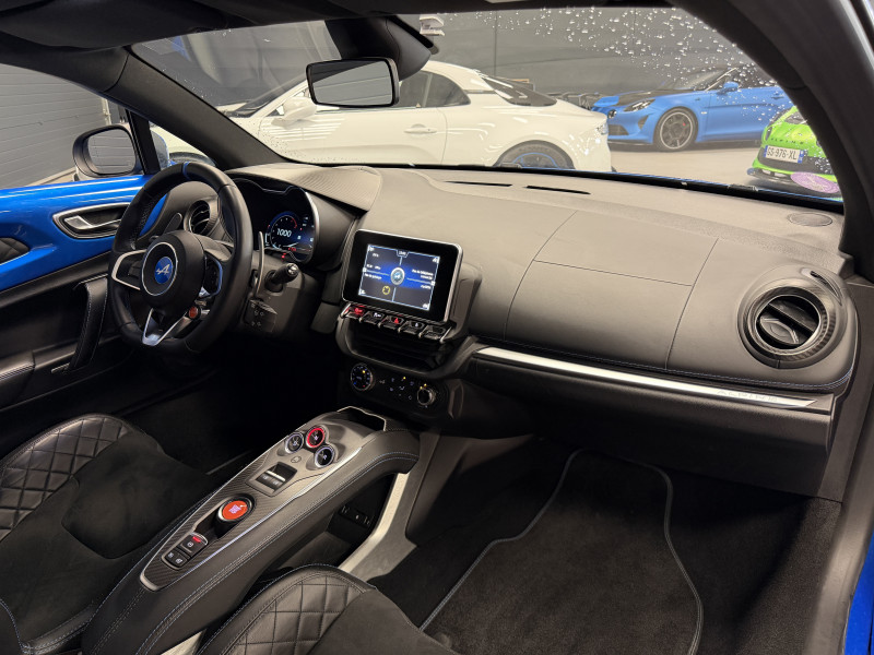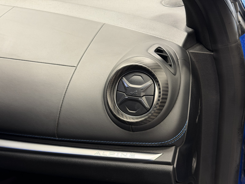 Agent Renault vend une Alpine A110 dans une configuration Bleu Alpine qui dispose de l'échappement sport, caméra de recul, radars avant/arrières, jantes 18 Sérac Diamantées, étriers de frein bleu, centres de roues noires, drapeau Français sur les montant et à l'intérieur des portes, Alpine Télémétrics, pack carbone intérieur, sièges Sabelt en cuir/alcantara, ciel de toit noir, logo bleu au centre du volant, pédalier aluminium, tapis de sol Alpine, carte mains libre, régulateur/limiteur de vitesse, GPS, radio, Bluetooth, climatisation automatique