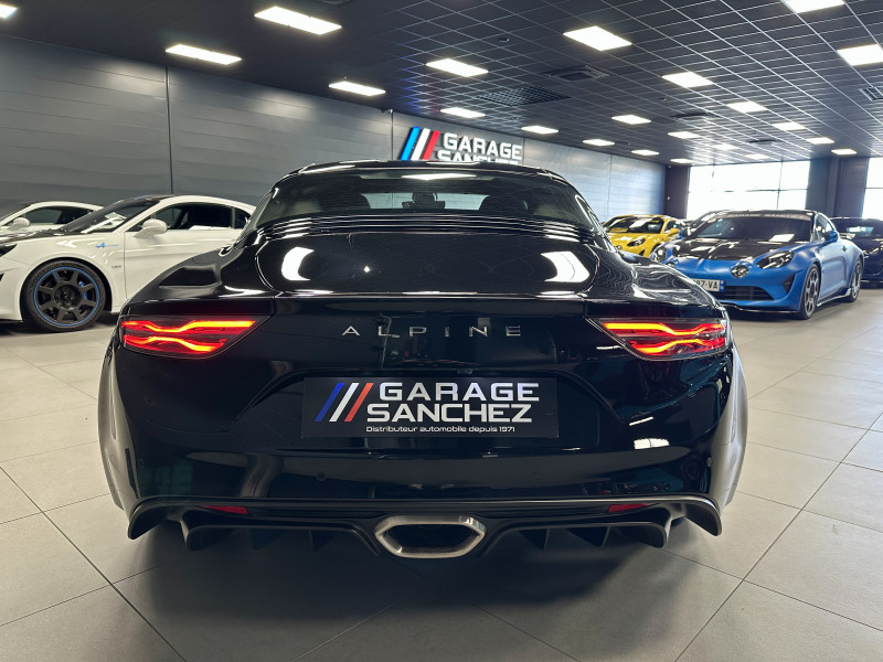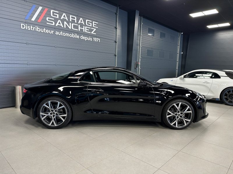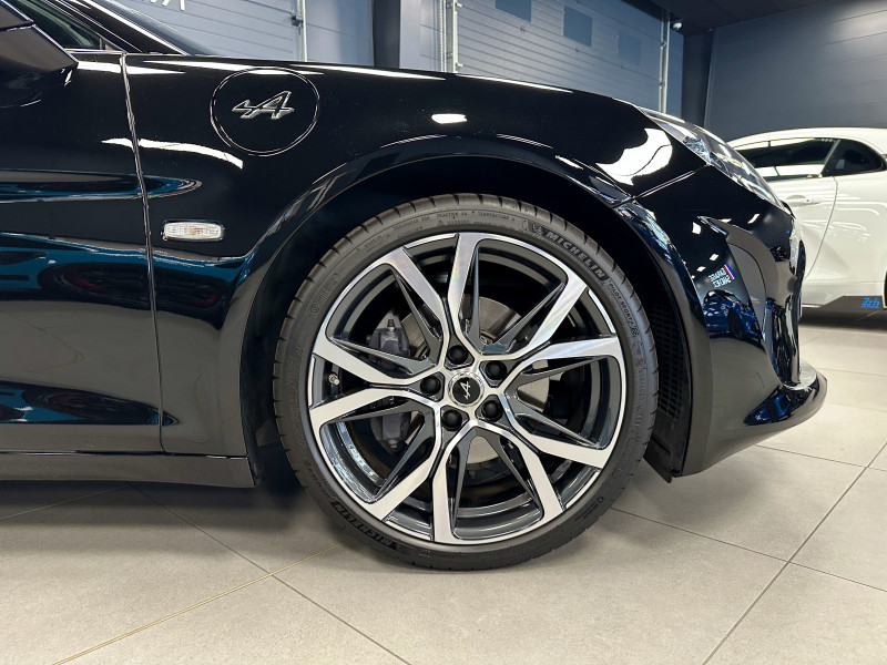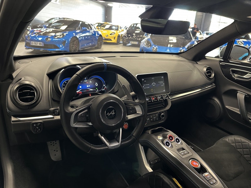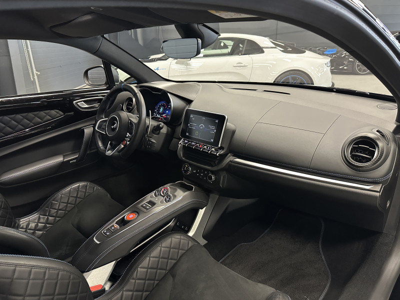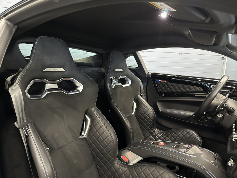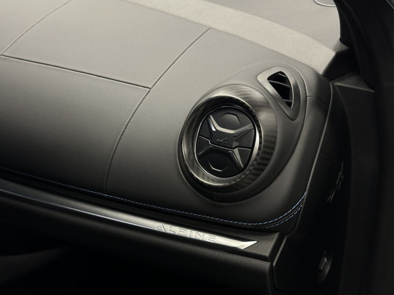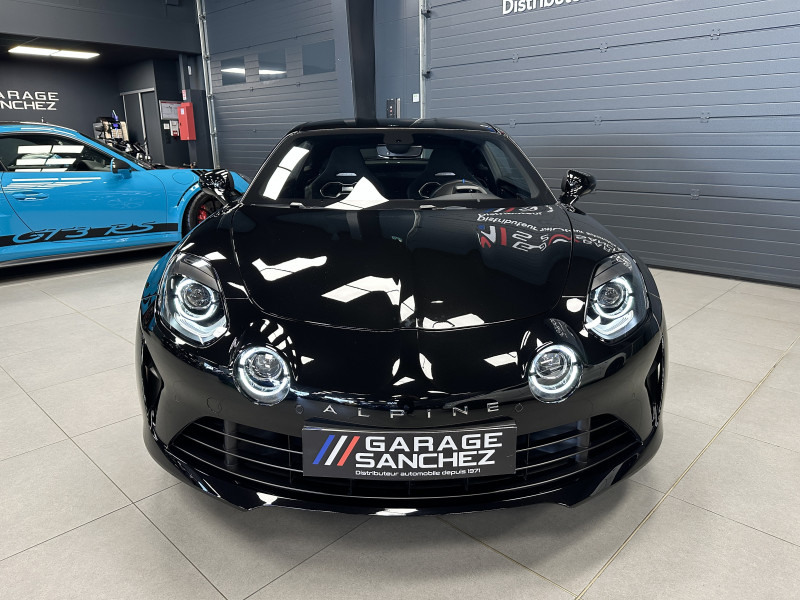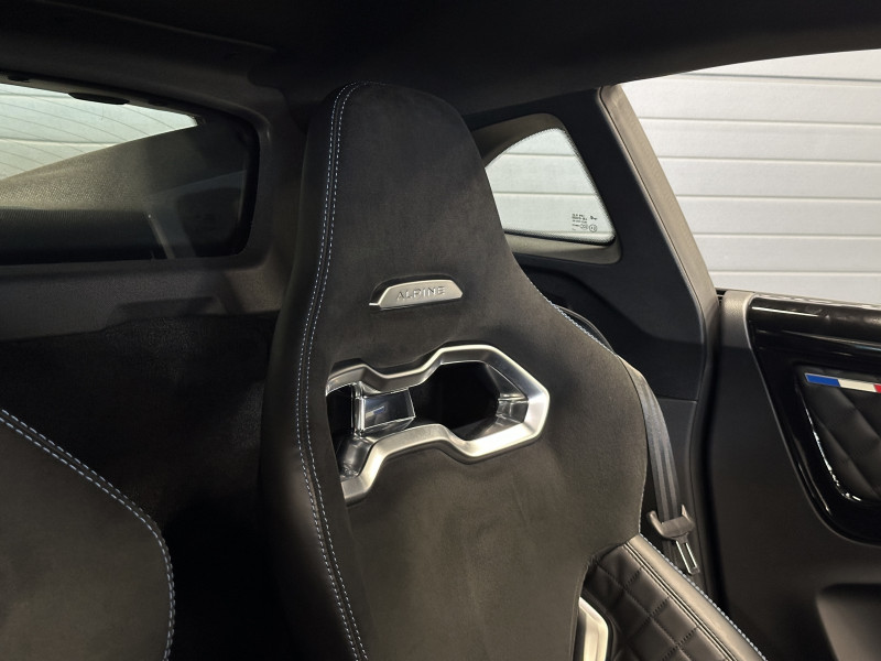 Agent Renault vend une Alpine A110 dans une configuration Noir Profond qui dispose d'un silencieux tube à valves, caméra de recul, radars avant/arrières, jantes 18 Sérac Diamantées, étriers de frein bleu, centres de roues noires, drapeau Français sur les montant et à l'intérieur des portes, pack carbone intérieur, intérieur noir, sièges Sabelt en cuir/alcantara, ciel de toit noir, pédalier aluminium, tapis de sol Alpine, rétroviseurs rabattables électriquement, rétroviseur électrochrome, carte mains libre, régulateur/limiteur de vitesse, Apple CarPlay & Android Auto, GPS, radio, Bluetooth, climatisation automatique