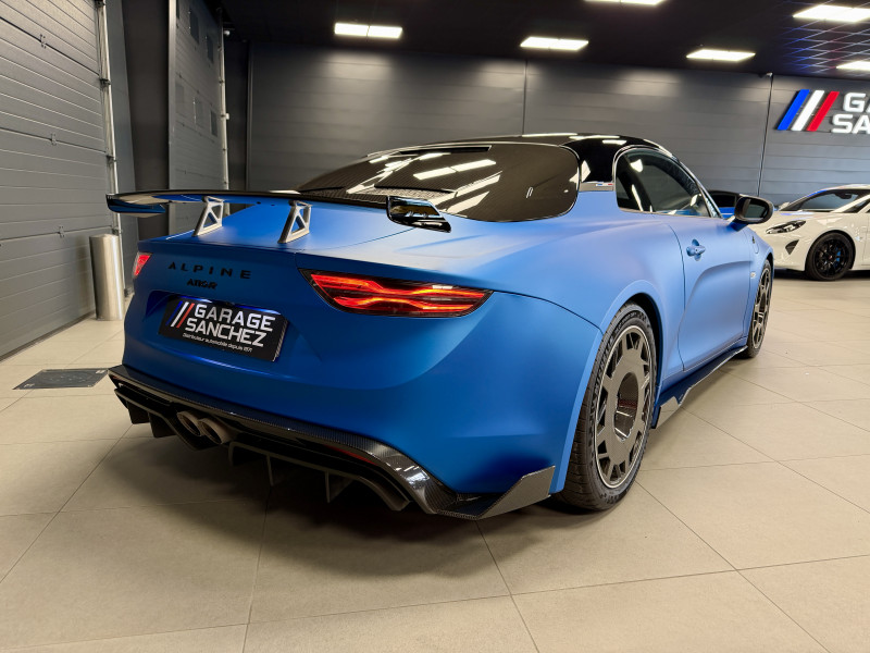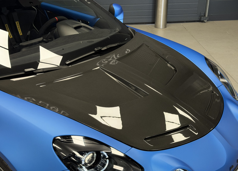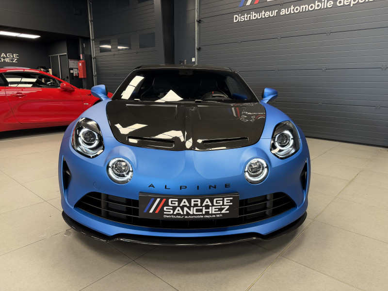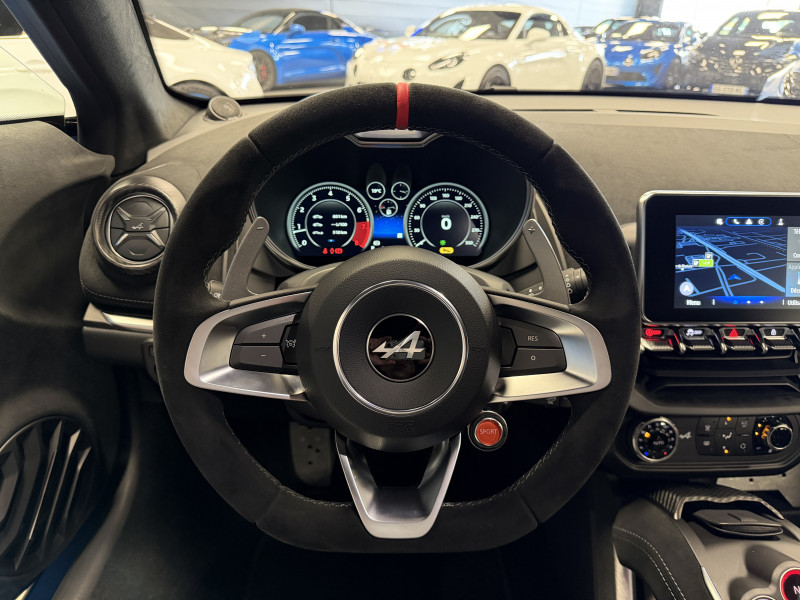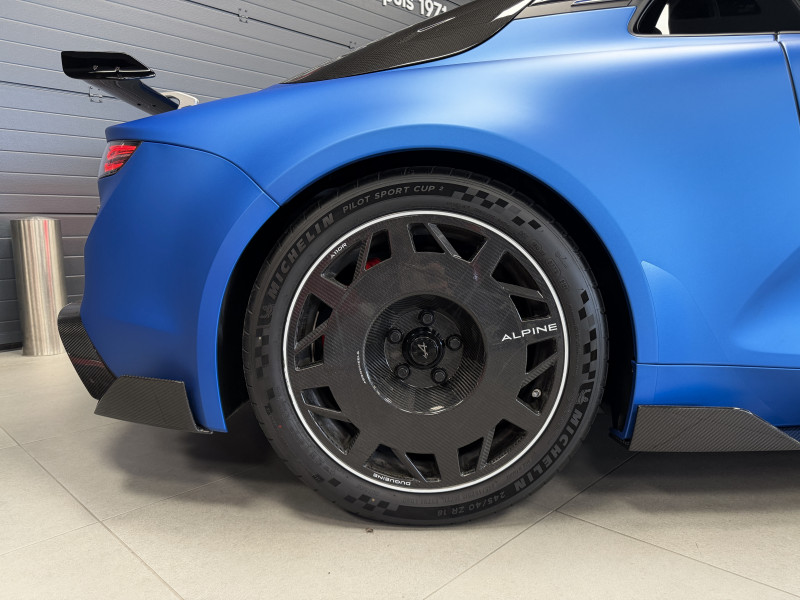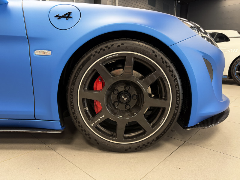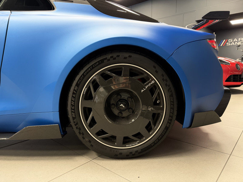 Agent Renault vend une Alpine A110 R Jantes carbone N°0067 dans une configuration Bleu Racing Mat qui dispose des montants contrastants noir, étriers de frein rouge, caméra de recul, pack Focal, pack carbone intérieur, pack microfibre, sièges Sabelt full carbone, harnais Sabelt, volant alcantara, ciel de toit dinamica, carte mains libre, pédalier aluminium, repose pieds passager aluminium, tapis de sol Alpine, régulateur/limiteur de vitesse, Apple CarPlay & Android Auto, GPS, radio, bluetooth, climatisation automatique