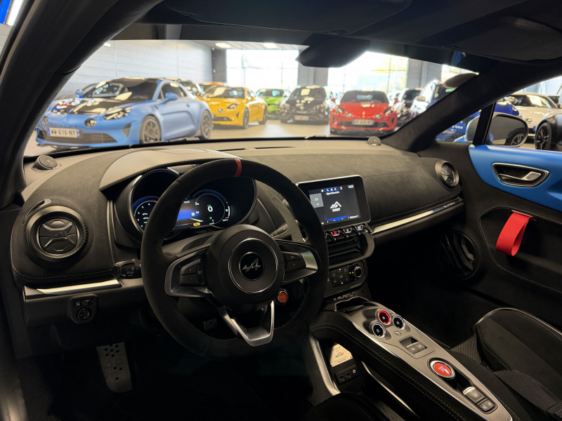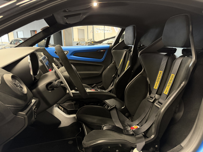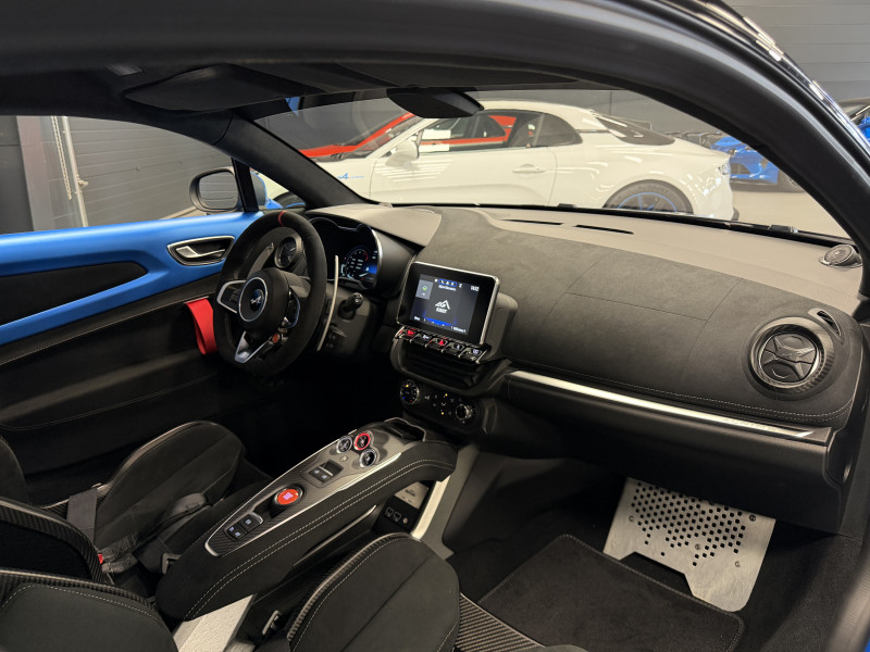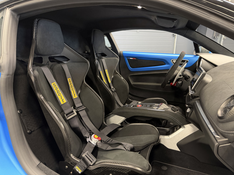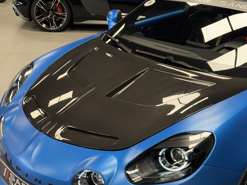 Agent Renault vend une Alpine A110 R Jantes carbone N°0129 dans une configuration Bleu Racing Mat qui dispose d'un film PPF sur la face avant (lame avant, pare choc avant, feux avant, capot, les ailes avant et les rétroviseurs), montants contrastants noir, étriers de frein Bleu, caméra de recul, pack Focal Premium, pack carbone intérieur, pack microfibre, sièges Sabelt full carbone, harnais Sabelt, volant alcantara, ciel de toit dinamica, carte mains libre, rétroviseurs rabattables électriquement, pédalier aluminium, repose pieds passager aluminium, tapis de sol Alpine, régulateur/limiteur de vitesse, Apple CarPlay & Android Auto, GPS, radio, bluetooth, climatisation automatique