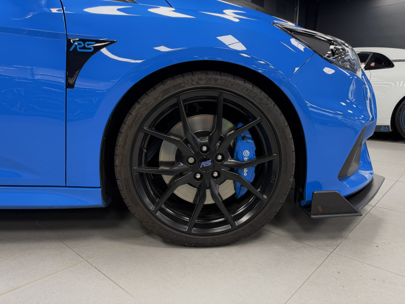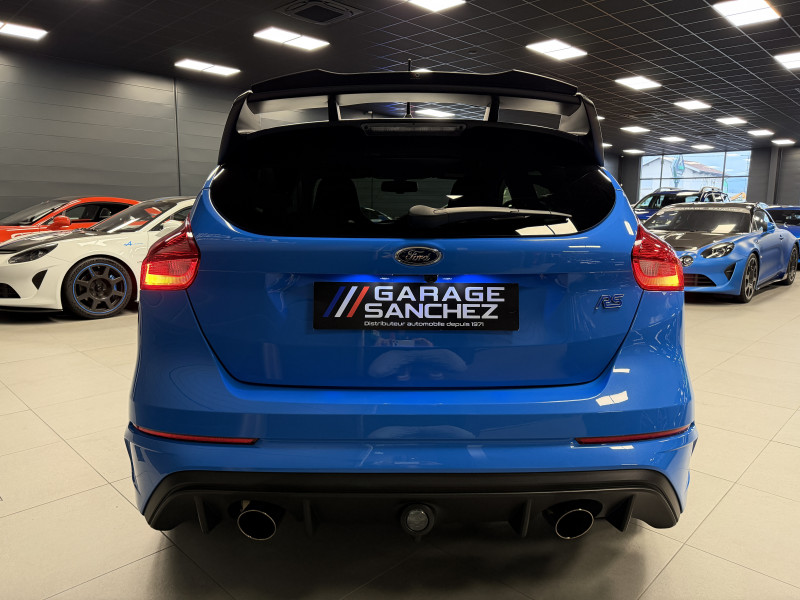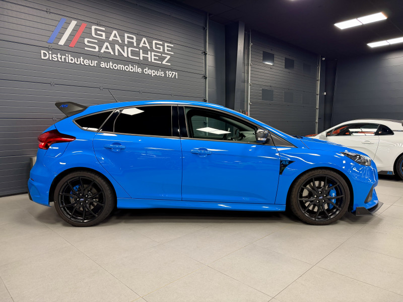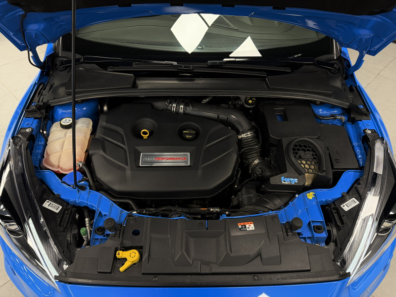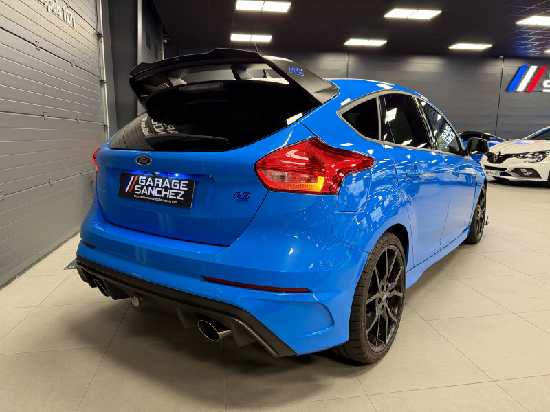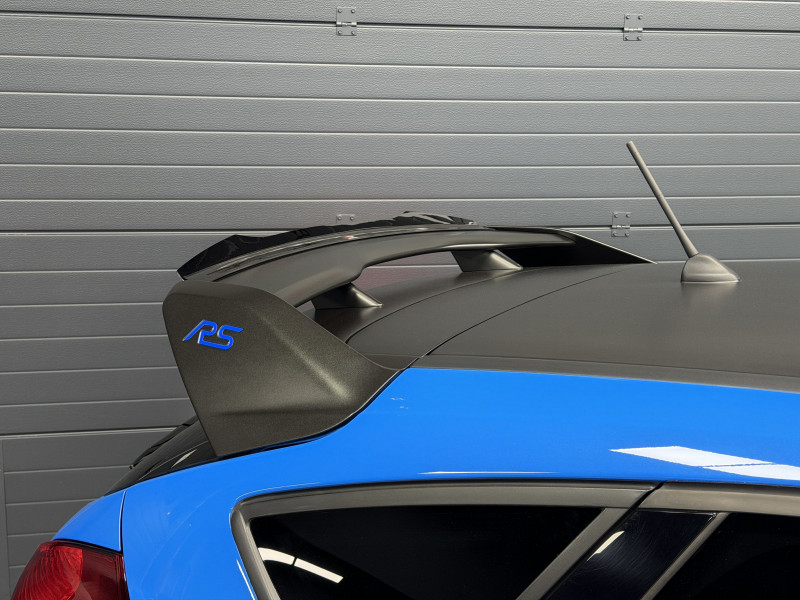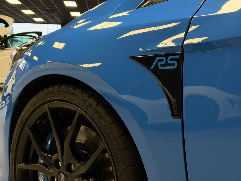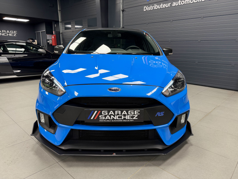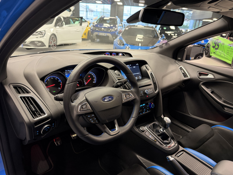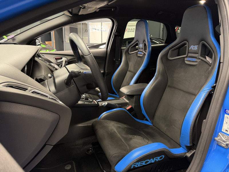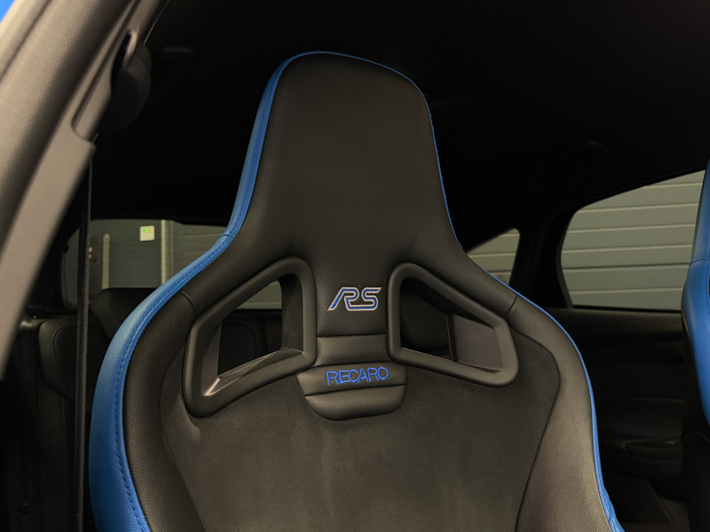 Agent Renault vend une Ford Focus RS dans une configuration Bleu Nitrous/Toit Noir Mat qui dispose du pack performance incluant le différentiel à glissement limité, le toit et les rétroviseurs noir mat, les jantes 19 Noir Mat avec le kit gros frein et les rebords des sièges en cuir bleu, kit Maxton Design incluant la lame avant et le becquet arrière, caméra de recul, dump valve ouverte Forge, étriers de frein bleu, sièges Recaro en cuir/alcantara, ciel de toit noir, Pack SONY, clé mains libre, modes de conduites Normal, Sport et Circuit, pédalier aluminium, régulateur/limiteur de vitesse, Apple CarPlay & Android Auto, GPS, radio, bluetooth, climatisation automatique