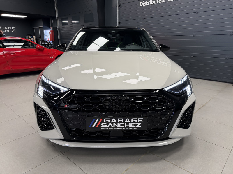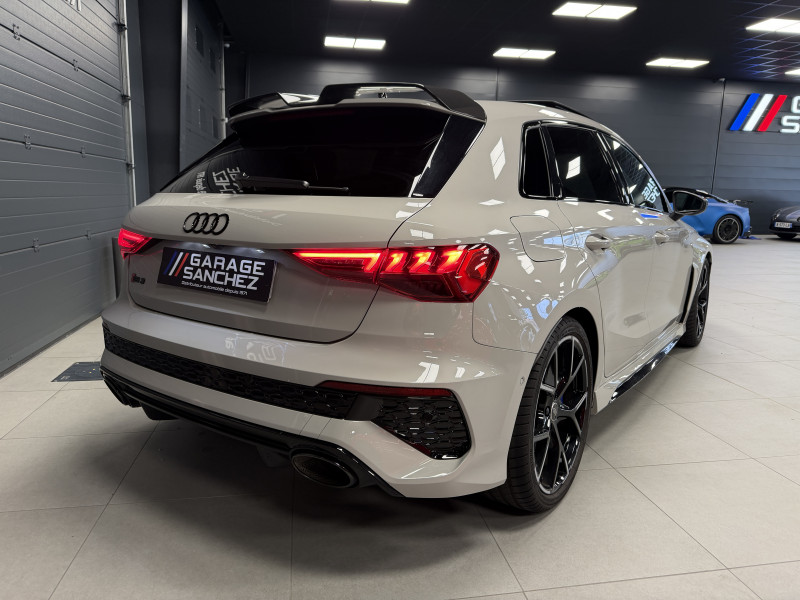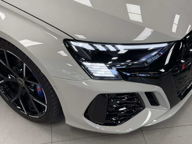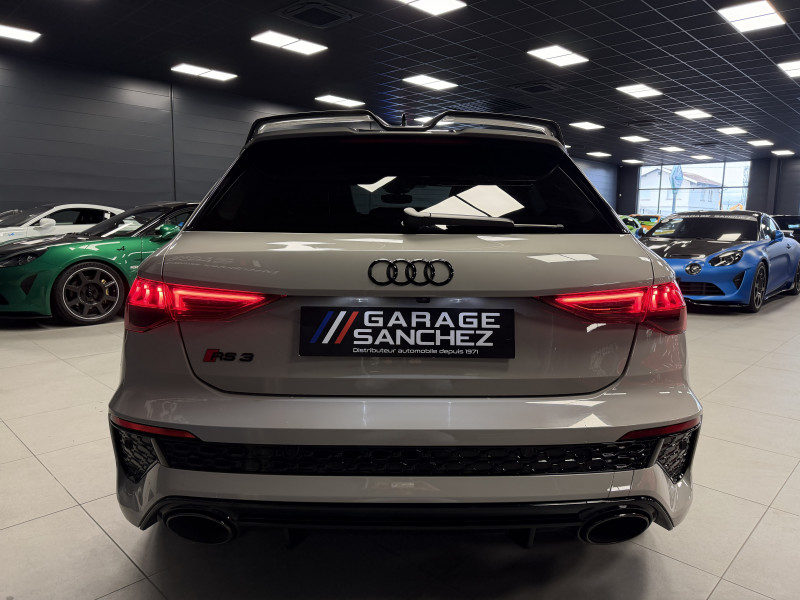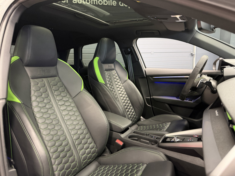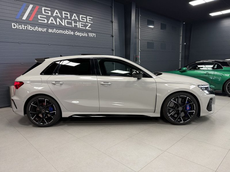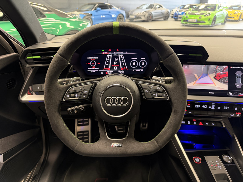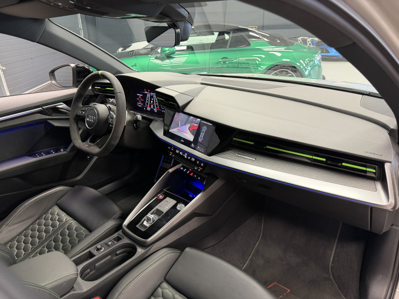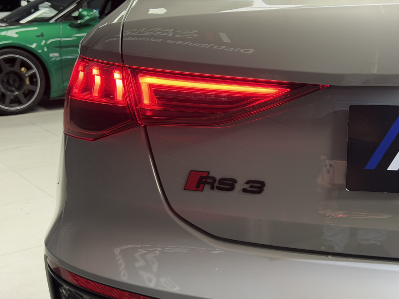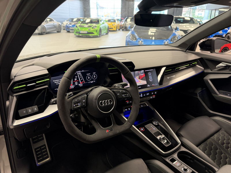 Agent Renault vend une RS3 8Y dans une configuration Audi Exclusive Gris Craie, qui dispose des freins céramique, pack carbone extérieur, toit ouvrant panoramique, affichage tête haute, feux Matrix, feux dynamiques, keyless, pack audio Bang & Olufsen, caméra de recul, radars avant/arrières, jantes 19 Noir Diamantées, étriers de frein bleu, hayon motorisé, antenne requin, vitres teintées, Audi Virtual Cockpit Plus, pack RS Design étendu vert, pack ambiance lumineuse, sellerie cuir/alcantara, sièges électriques, sièges avant chauffants, volant alcantara, ciel de toit noir, tapis de sol RS, Audi assistance, Apple CarPlay & Android Auto, bluetooth, climatisation automatique