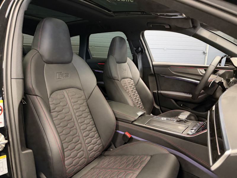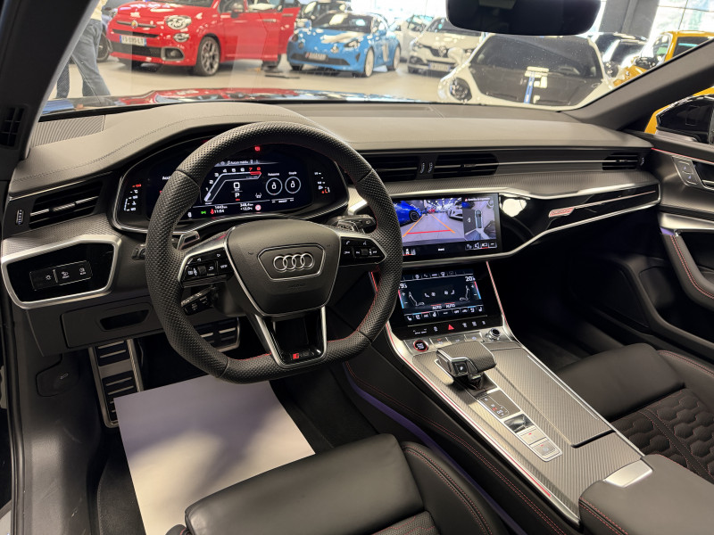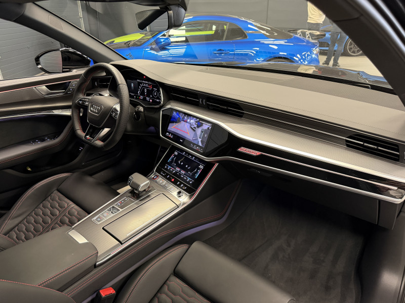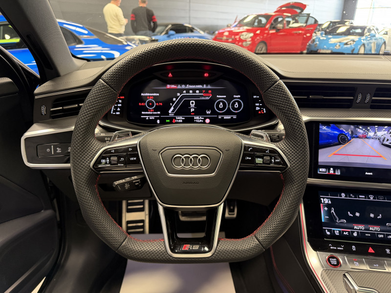 Agent Renault vend une Audi RS6 Performance dans une configuration Noir Mythic qui dispose du toit ouvrant, double toit panoramique, attelage escamotable, échappement RS, châssis Sport RS avec dynamic ride control, pack Dynamic RS Plus, V-MAX 305 KM/H, feux Matrix Dynamiques, keyless, affichage tête haute, park assist, caméra de recul, vitres teintées, hayon électrique, jantes 22 Performance Or Vif, étriers de frein rouge, pack RS Design rouge, cuir étendu, sièges RS, sièges électriques à mémoire, chauffants et ventilés, sièges arrières chauffants, volant RS, pack carbone intérieur, pack éclairage d'ambiance, Audi Smartphone interface, lane assist, avertisseur d'angles morts, sono Bang & Olufsen, Audi Cruise Control, Apple CarPlay & Android Auto