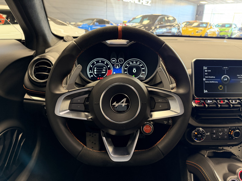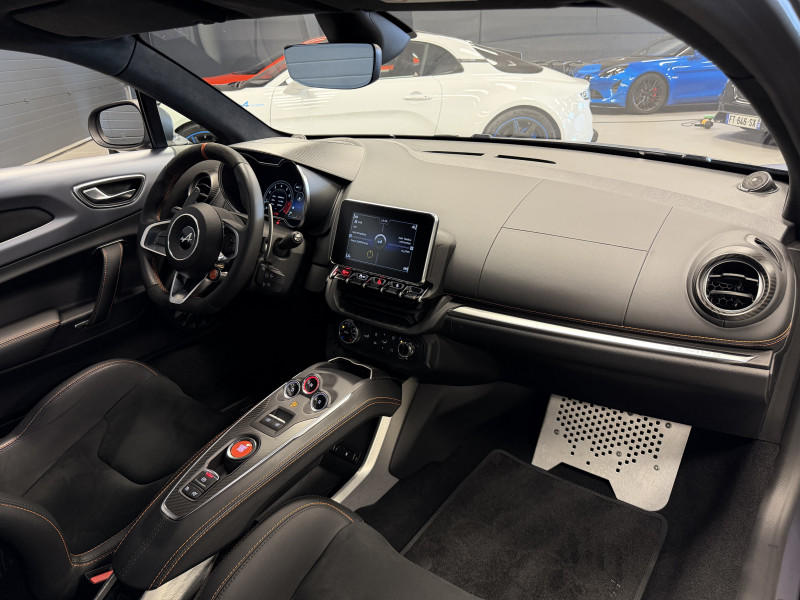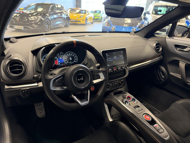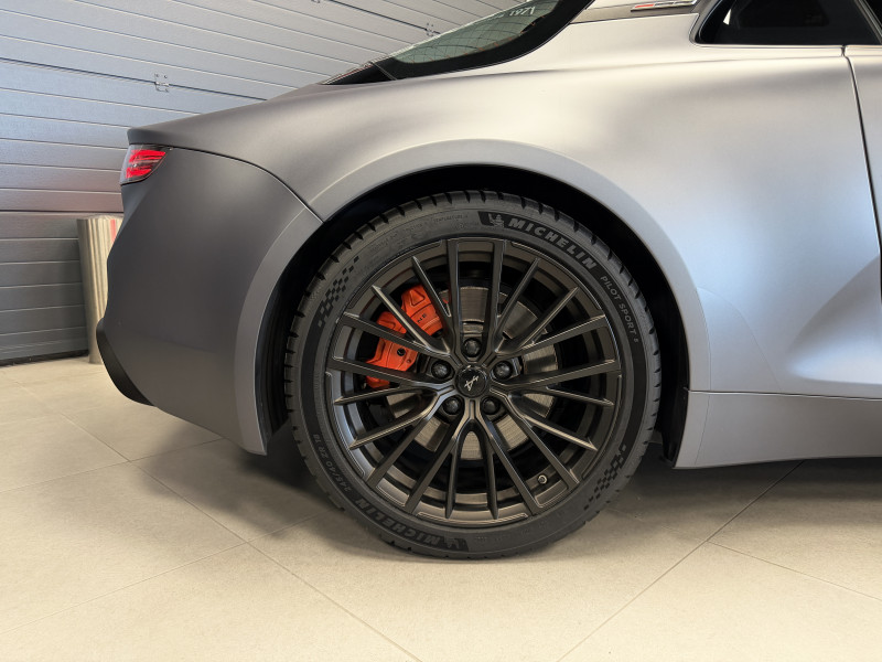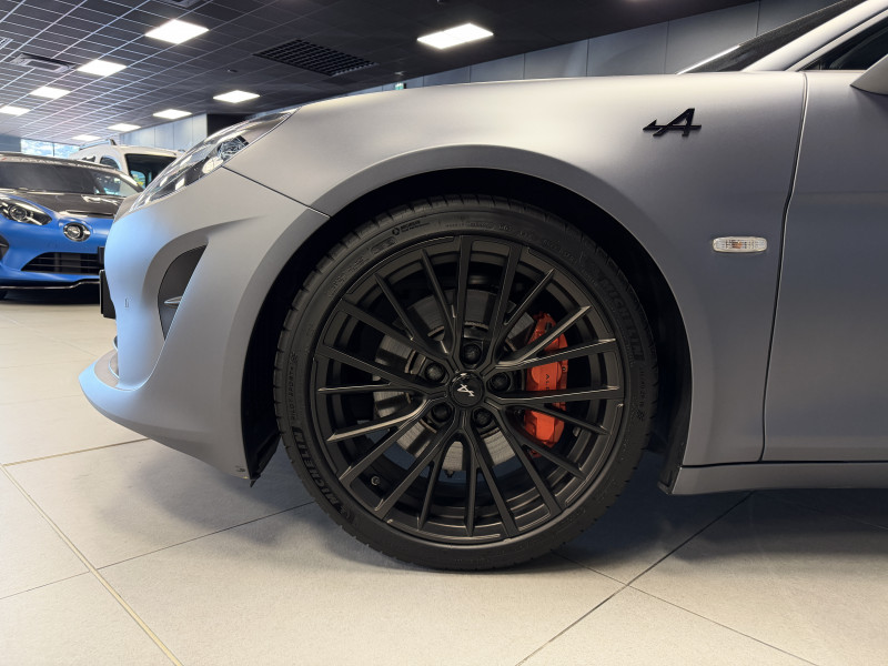 Agent Renault vend une Alpine A110 S dans une configuration Gris Tonnerre Mat qui dispose de l'échappement sport, kit gros freins avec les étriers orange, black badge complet, jantes GT Race 18 Noir Mat, caméra de recul avec aide aux stationnement avant et arrières, sièges Sabelt en cuir/alcantara, logo A sur les sièges, volant cuir/alcantara, ciel de toit dinamica, logo A au centre du volant en noir, Alpine Télémétrics, Pack Focal, Pack rangement, pédalier aluminium, repose pied passager aluminium, seuil de porte Alpine, rétroviseurs rabattables électriquement, rétroviseur intérieur électrochrome, tapis de sol Alpine, carte mains libre, régulateur/limiteur de vitesse, GPS, radio, bluetooth, climatisation automatique