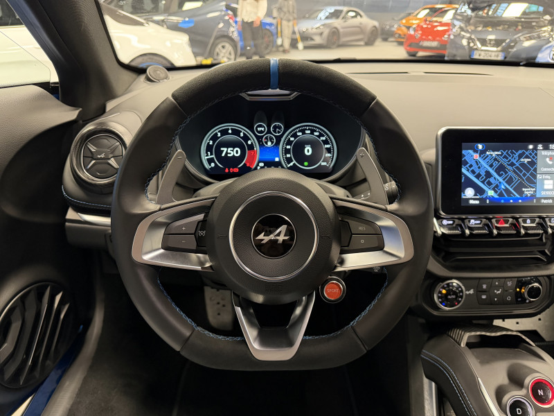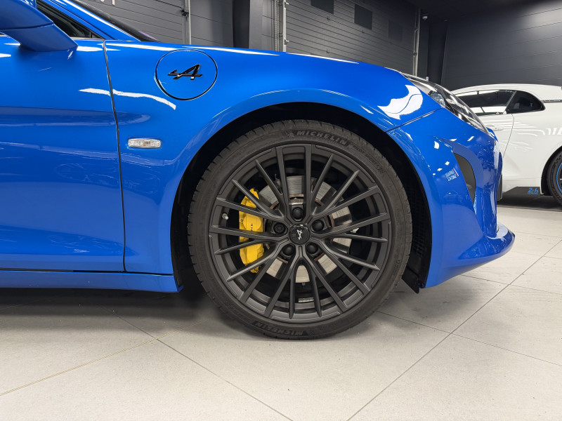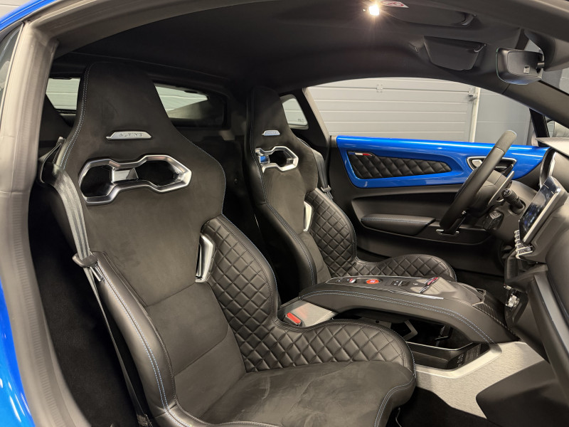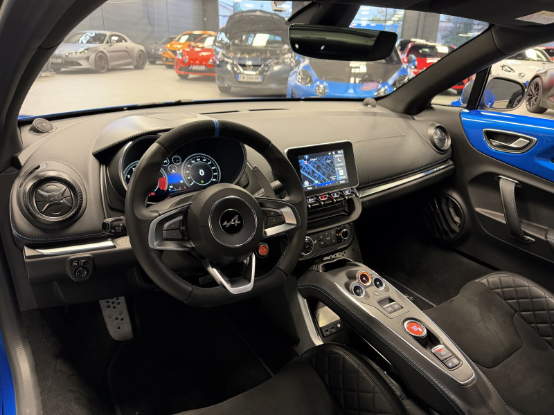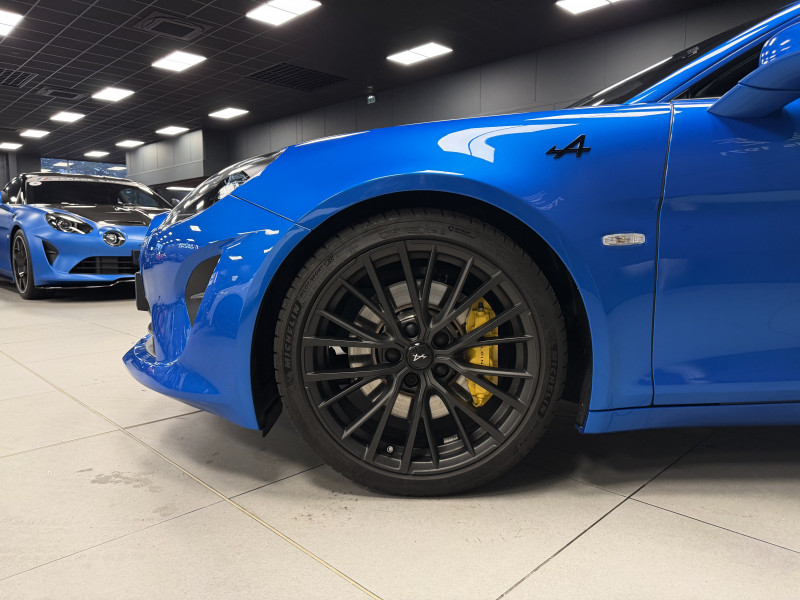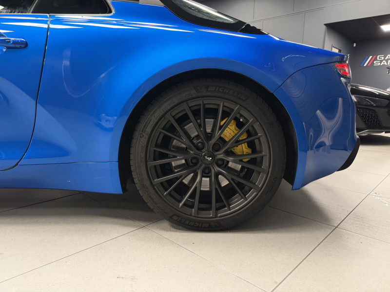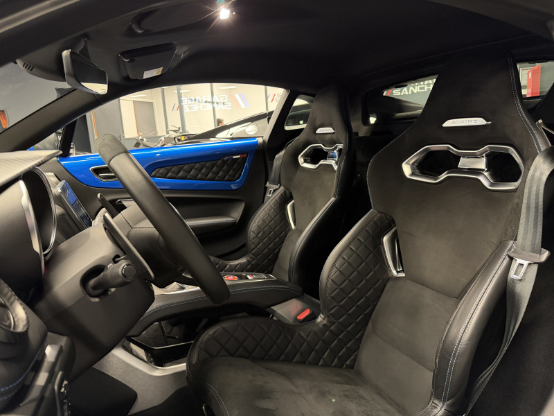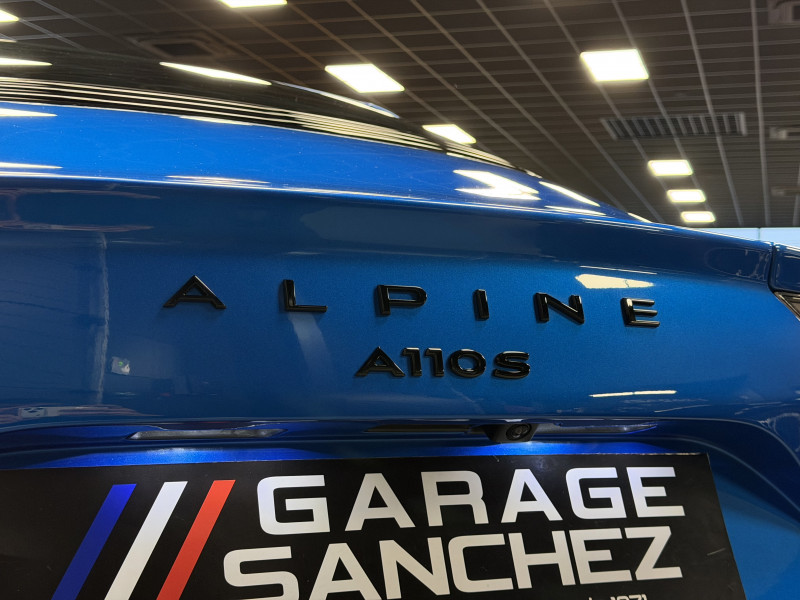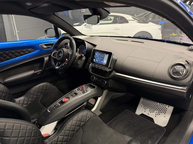 Agent Renault vend une A110 S II dans une configuration Bleu Alpine qui dispose de l'échappement sport, kit gros freins avec les étriers Jaune, black badge complet, jantes 18'' GT Race Noir Mat, caméra de recul avec aide aux stationnement avant et arrières, fond des feux avant noir, pack carbone intérieur, sièges Sabelt en cuir/alcantara, intérieur avec les surpiqures bleu, volant alcantara, logo A au centre du volant en noir, Alpine Télémétrics, Pack Focal, pédalier aluminium, repose pied passager aluminium, seuil de porte Alpine, tapis de sol Alpine, rétroviseurs rabattables électriquement, rétroviseur intérieur éléctrochrome, carte mains libre, régulateur/limiteur de vitesse, Apple CarPlay & Android Auto, GPS, radio, bluetooth, climatisation automatique