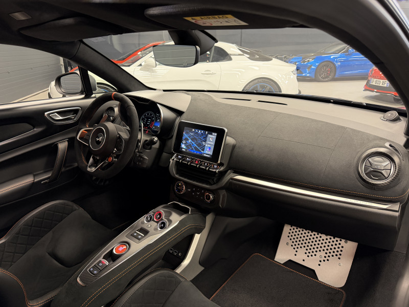Agent Renault vend une A110 S II dans une configuration Noir Carbone Mat (peinture atelier Alpine), qui dispose d'un film de protection PPF Mat complet, pack aéro incluant la lame et l'aileron en carbone, échappement sport, kit gros freins avec les étriers orange, black badge complet, jantes 18'' GT Race Noir Brillantes, caméra de recul avec aide aux stationnement avant et arrières, pack carbone intérieur, pack microfibre, sièges racing microfibre Orange atelier Alpine, intérieur avec les surpiqures orange, volant alcantara, ciel de toit dinamica, logo A au centre du volant en noir, Alpine Télémétrics, Pack Focal Premium, pédalier aluminium, repose pied passager aluminium, seuil de porte Alpine, tapis de sol Alpine, rétroviseurs rabattables électriquement, rétroviseur intérieur éléctrochrome, carte mains libre, régulateur/limiteur de vitesse, Apple CarPlay & Android Auto, GPS, radio, bluetooth, climatisation automatique