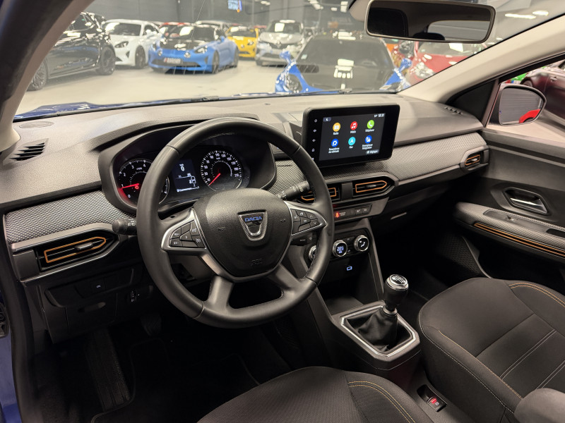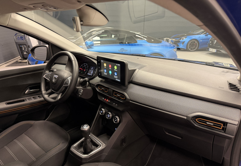 Agent Renault/Dacia vend une Dacia Sandero GPL/Essence, le véhicule peut fonctionner avec les deux carburant en pouvant passer de l'un a l'autre même en roulant, véhicule dans une configuration Bleu Iron qui dispose du pack city incluant la caméra de recul, les radars de recul avant/arrières ainsi que les avertisseurs d'angles morts, pack confort incluant la clé mains libre et le frein de parking électrique, jantes 16 Diamantées Noires, sellerie tissu, régulateur/limiteur de vitesse, Apple CarPlay & Android Auto, radio, bluetooth, climatisation automatique