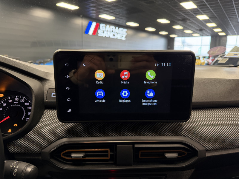 Agent Renault/Dacia vend une Dacia Sandero dans une configuration Blanc Glacier qui dispose du pack confort incluant la carte mains libre et le frein à main électrique, caméra de recul, radars de recul arrières, jantes 16 Diamantées Noires, sellerie tissu bi-ton, régulateur/limiteur de vitesse, Apple CarPlay & Android Auto, GPS, radio, bluetooth, climatisation automatique