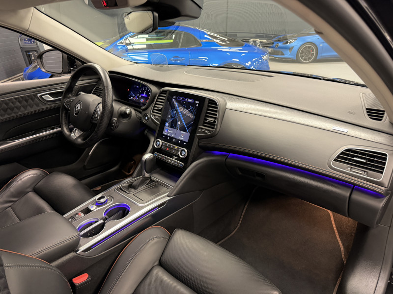 Agent Renault vend un Talisman Initiale Paris dans une configuration Noir Etoilé qui dispose de l'affichage tête haute, park assist, caméra de recul, radars 360°, jantes 19 Diamantées Initiale Paris, vitres teintées, antenne requin, feux adaptatifs avec feux de route automatiques, sellerie cuir, sièges avant électriques à mémoires, chauffants, ventilés et massant, volant chauffant, pack ambiance lumineuse, carte mains libre, régulateur de vitesse adaptatif avec pilote semi autonome, détecteur de fatigue, alerte de franchissement de ligne, maintien de voie, avertisseur d'angles morts, Apple CarPlay & Android Auto, écran 9.3 , cockpit 10 , GPS, radio, bluetooth, climatisation automatique