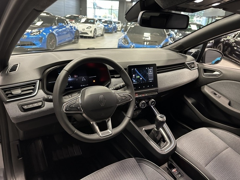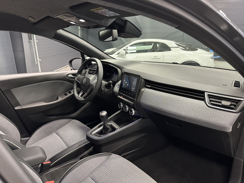Agent Renaut vend une Clio 5 Techno dans une configuration Gris Schiste qui dispose de la caméra de recul, radars de recul arrières, jantes 16 Diamantées, coques de rétroviseurs noir, antenne requin, virtual cockpit, sellerie cuir/tissu bi-ton gris et noir, intérieur noir, ciel de toit noir, pack ambiance lumineuse, alerte de franchissement de ligne, maintien de voie, régulateur/limiteur de vitesse, Apple CarPlay & Android Auto sans fil, GPS, radio, bluetooth, climatisation automatique, roue de secours