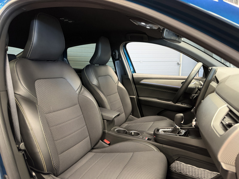 Agent Renault vend un Arkana dans une configuration Bleu Zanzibar qui dispose de la caméra de recul, radars 360°, jantes 18 Diamantées Noires, tableau de bord 10 , écran EasyLink 9.3 , virtual cockpit, sellerie cuir/tissu, ciel de toit, carte mains libre, alerte de franchissement de ligne, maintien de voie, avertisseur d'angles morts, régulateur de vitesse, Apple CarPlay & Android Auto sans fil, GPS, radio, bluetooth, climatisation automatique