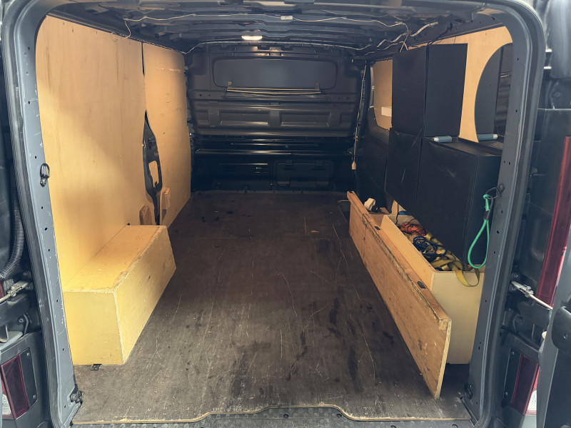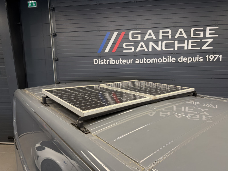 Agent Renault vend un Trafic Grand Confort dans une configuration Gris Urbain qui dispose d'un attelage, aménagement en bois complet à l'arrière, 2 panneaux solaire sur le toit de 120 watts chacun, batterie lente 140 ampère, chargeur de batterie Victron, convertisseur 1000 watts, caméra de recul, radars de recul arrières, jantes 16 , sellerie tissu, régulateur/limiteur de vitesse, Apple CarPlay & Android Auto, GPS, radio, bluetooth, climatisation automatique