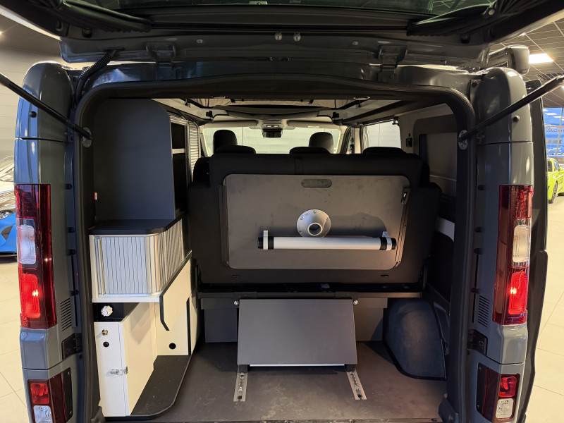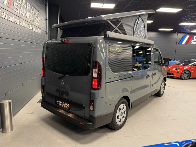 Agent Renault vend un Trafic Van Hanroad L1H1 dans une configuration Gris Urbain qui dispose d'un aménagement complet avec une douche, 2 couchettes, un coin cuisine et un auvent Thule, caméra de recul, radars avant/arrières, jantes 16 , pack style, portes latérale coulissante avec ouvrant, vitres latérale gauche avec ouvrant, vitres surteintées, limiteur/régulateur de vitesse, GPS, radio, bluetooth, climatisation automatique, roue de secours