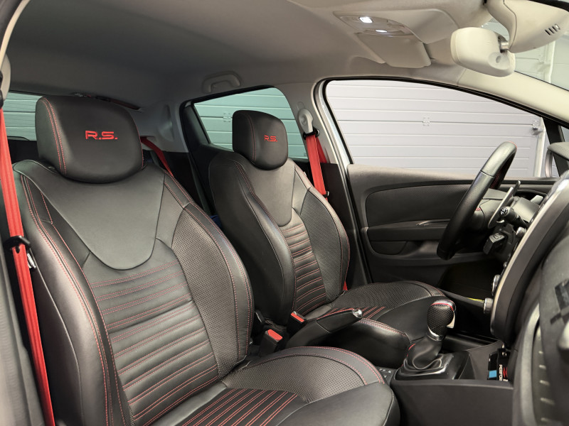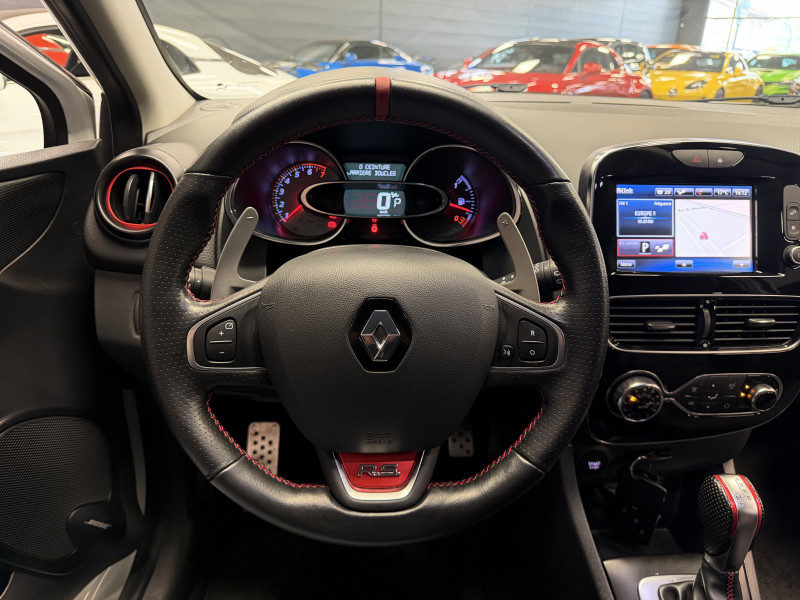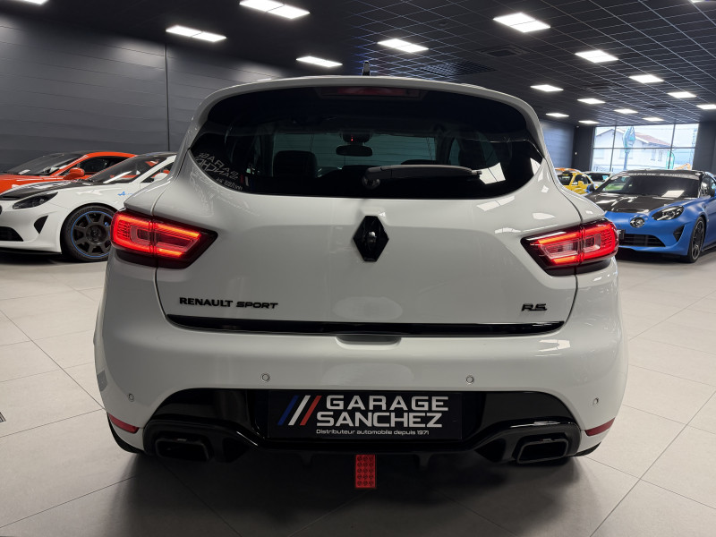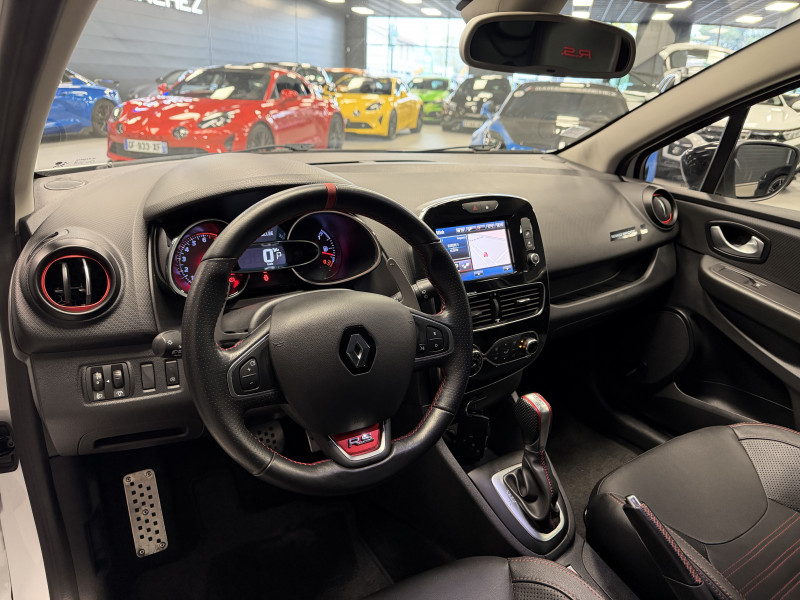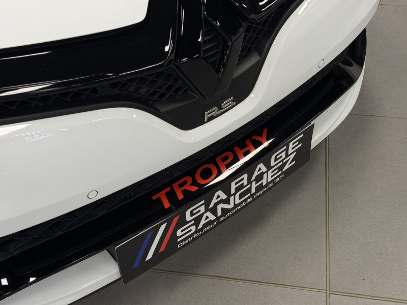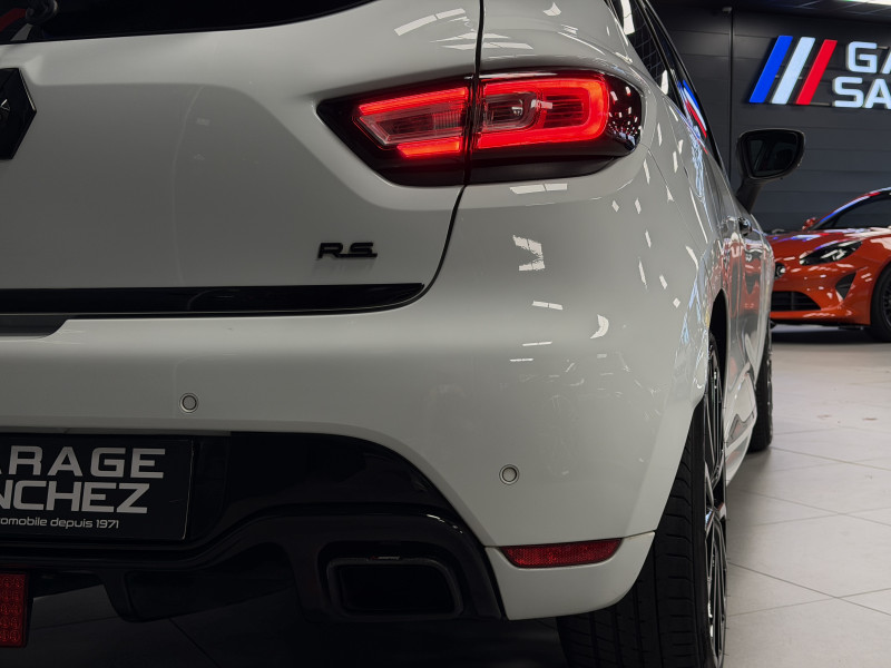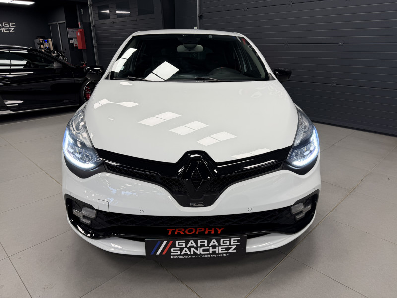 Agent Renault vend une Clio 4 RS Trophy dans une configuration Blanc Glacier qui dispose d'un silencieux tube GT Performance, black pack incluant la lame avant noire, les baguettes latérales noires ainsi que le diffuseur noir, black badge complet, feux F1, pack city plus incluant la caméra de recul ainsi que les radars avant/arrières, jantes 18 Full Black, étriers de frein rouge, sticker Trophy sur la lame avant en rouge, RS Monitor, sellerie cuir, sièges avant chauffants, carte mains libre, régulateur/limiteur de vitesse, Android Auto, GPS, radio, Bluetooth, BOSE, climatisation automatique