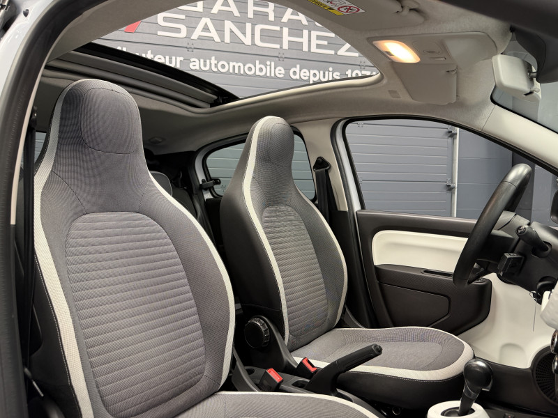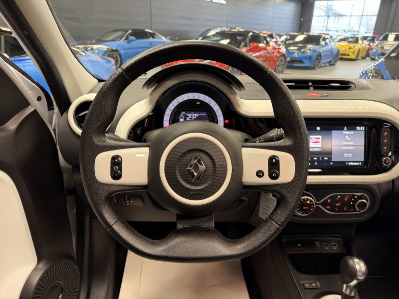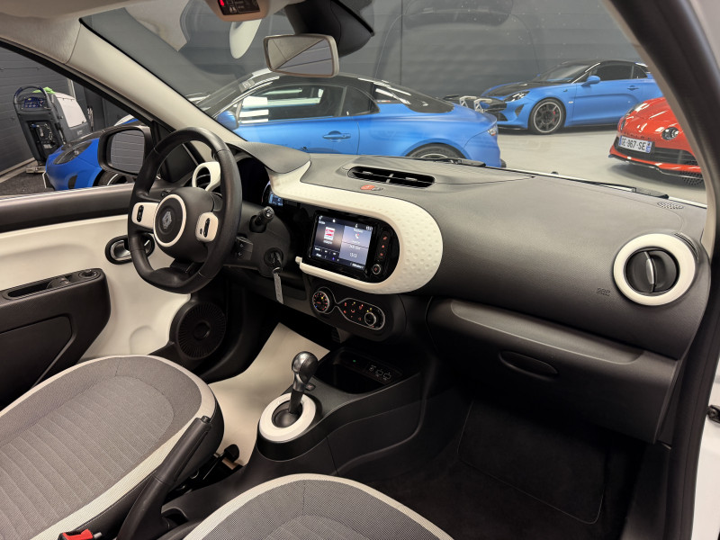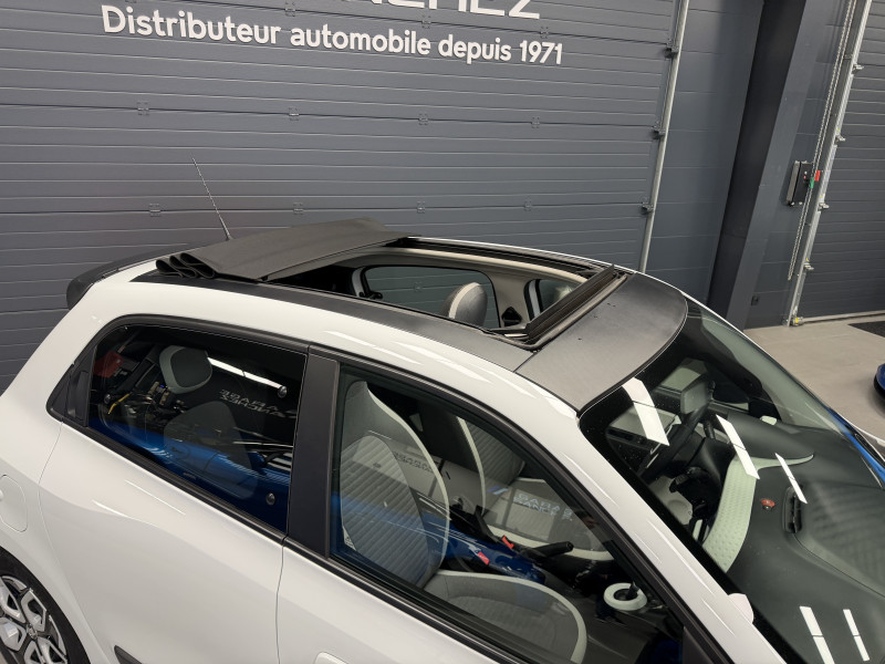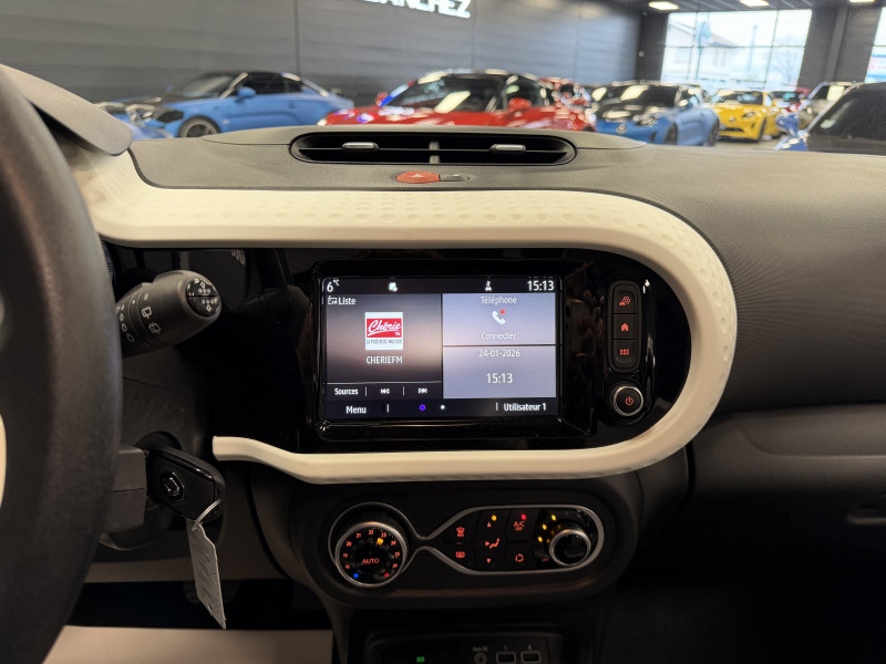 Agent Renault vend une Twingo 3 dans une configuration Blanc Cristal qui dispose du toit ouvrant en toile, câble de recharge mode 3 Type 2, jantes 15 , sellerie tissu bi-ton, décors intérieur blanc, limiteur de vitesse, Apple CarPlay & Android Auto, GPS, radio, bluetooth, climatisation automatique